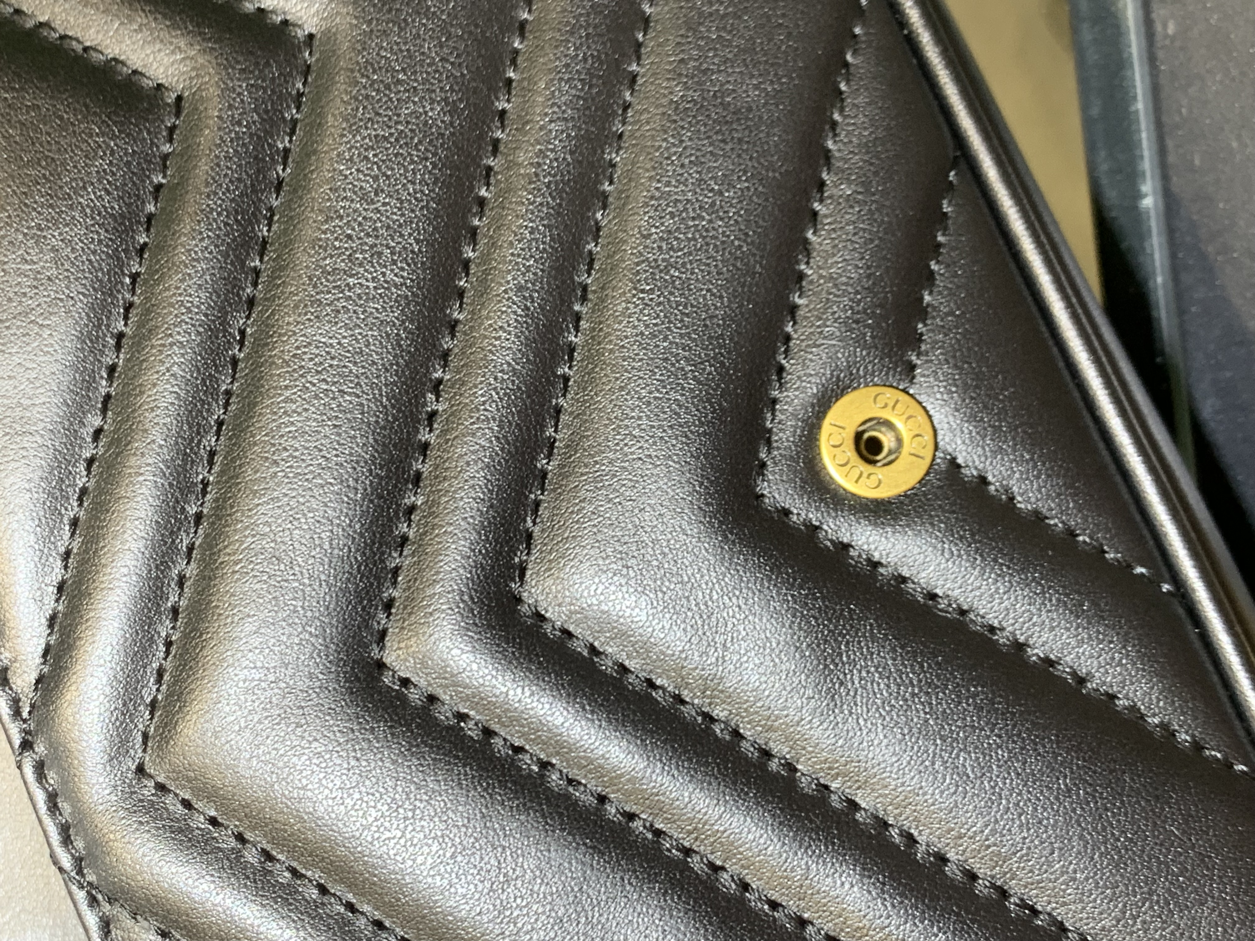 • Iconic Double G Hardware: Features the instantly recognizable antique gold-tone interlocking GG logo on the flap.
