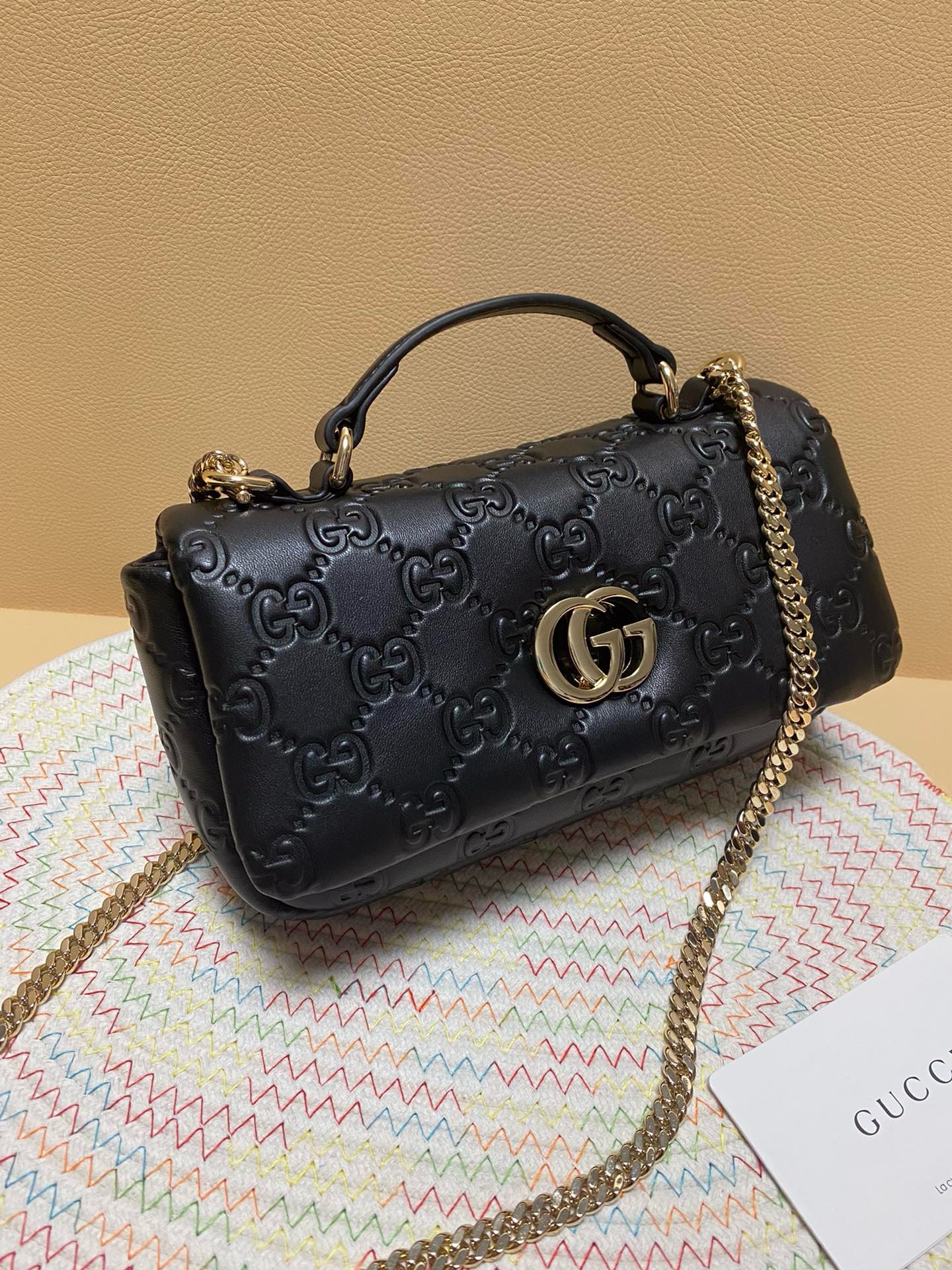 Gucci Embossed GG Shoulder Bag: Stunning Black Leather for 2024 Style
