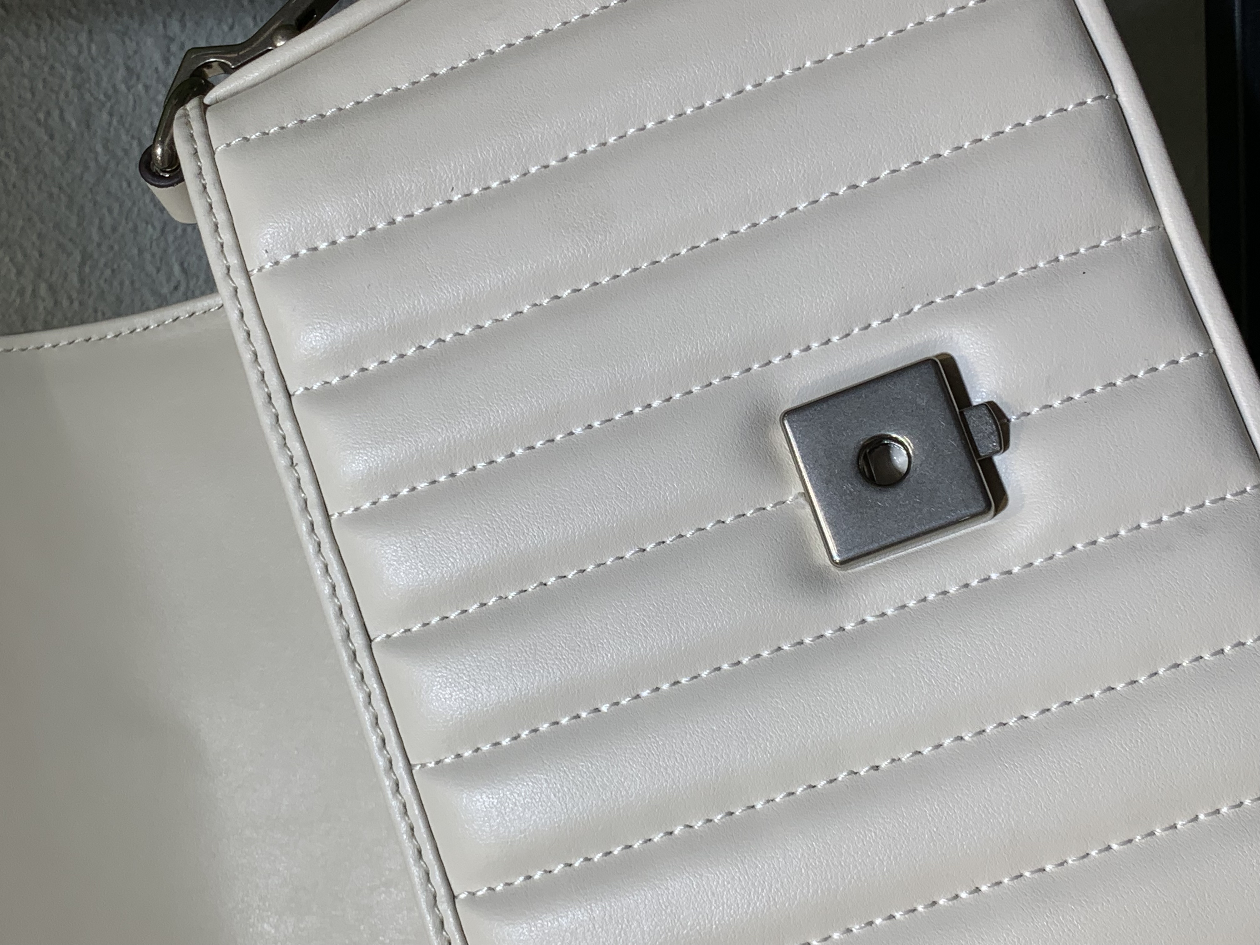 • Iconic Matelassé Leather: Crafted from supple, durable white matelassé leather with a distinctive chevron quilting pattern.