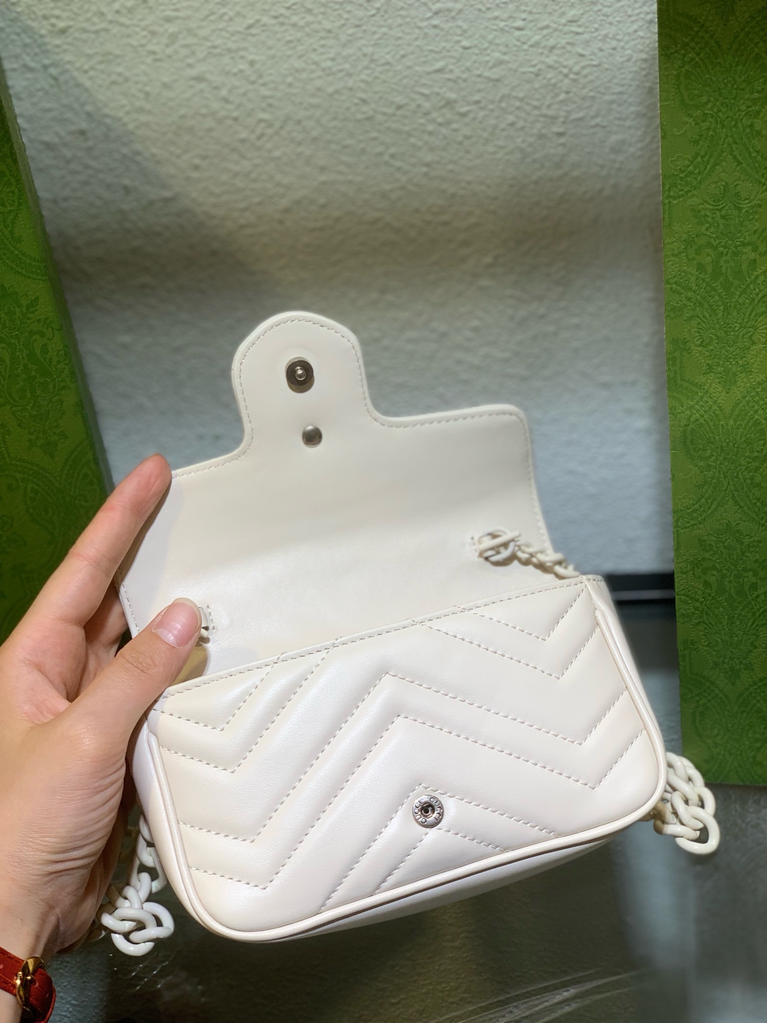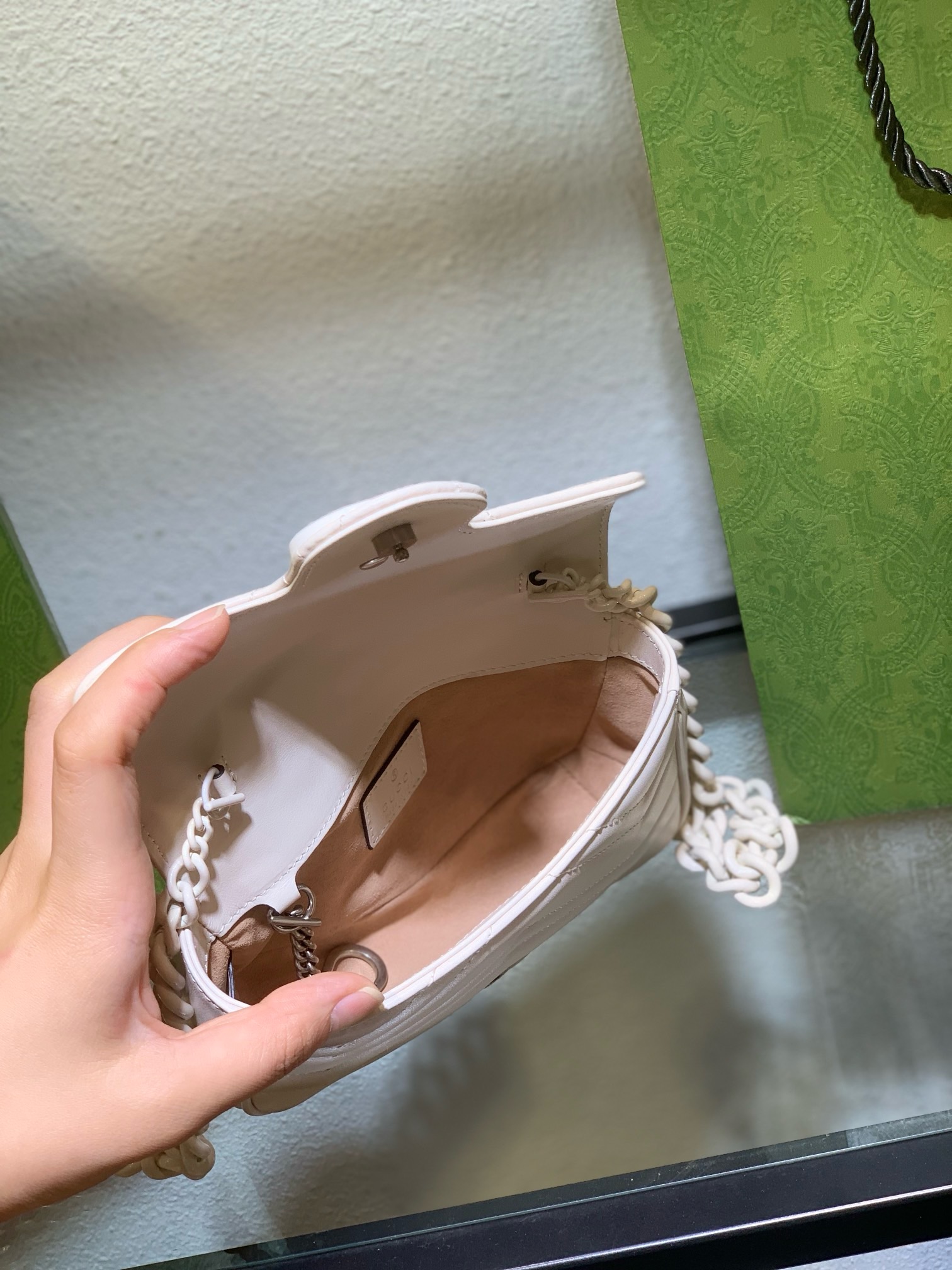 We provide fast, secure, and insured shipping, ensuring your precious **Gucci GG Marmont White Mini Bag** arrives safely and promptly at your doorstep. Our dedicated customer service team is always ready to assist you, from pre-purchase inquiries to after-sales support, guaranteeing a seamless shopping journey. Explore our full range of exquisite pieces and browse more Gucci bags or view our mini bag collection today.