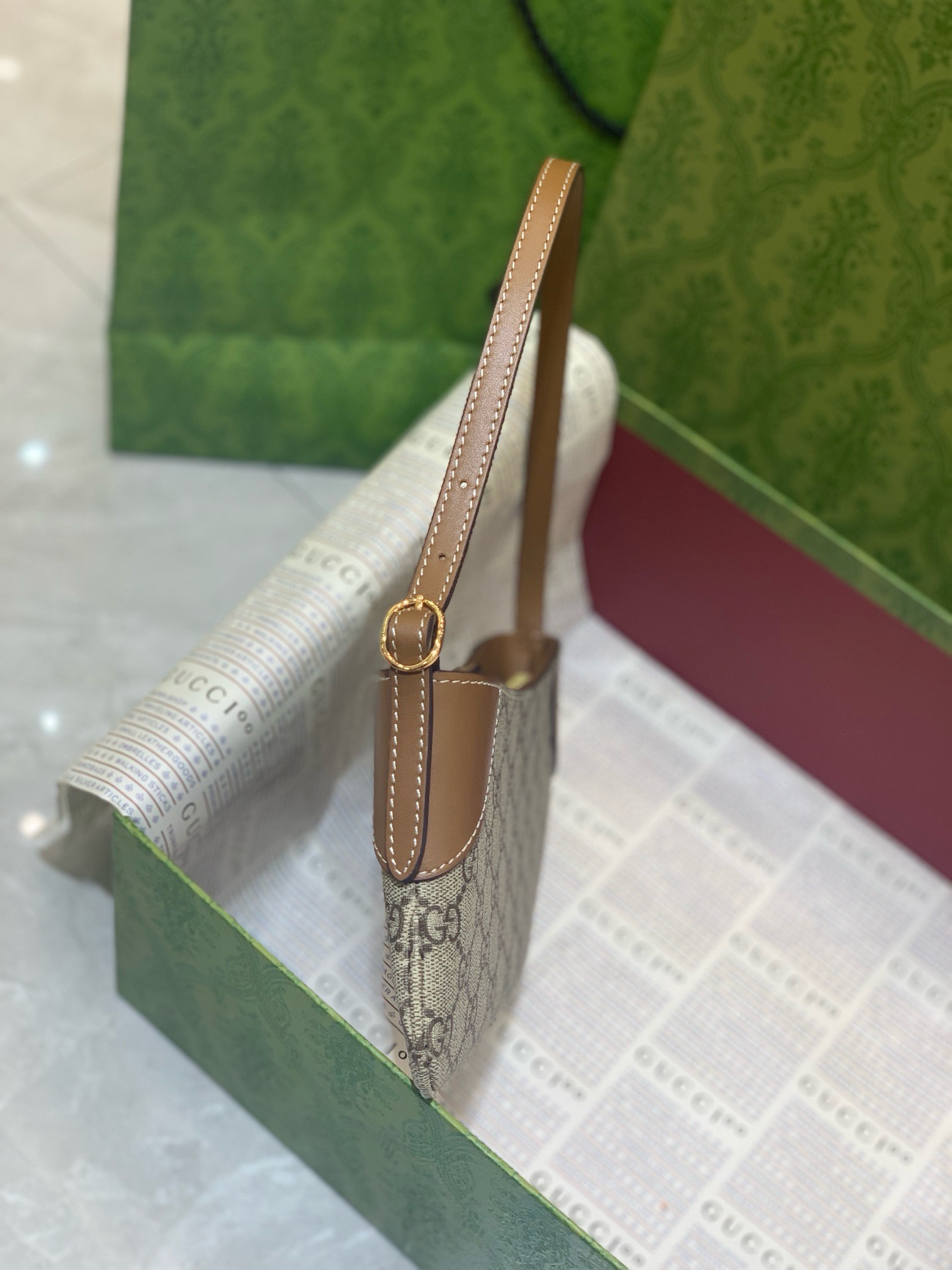 To ensure your Gucci GG Supreme Baguette Bag maintains its pristine condition for years, proper care is essential. Avoid prolonged exposure to direct sunlight, heat, and moisture. Store your bag in its original dust bag in a cool, dry place when not in use, and stuff it with tissue paper to help retain its shape.
