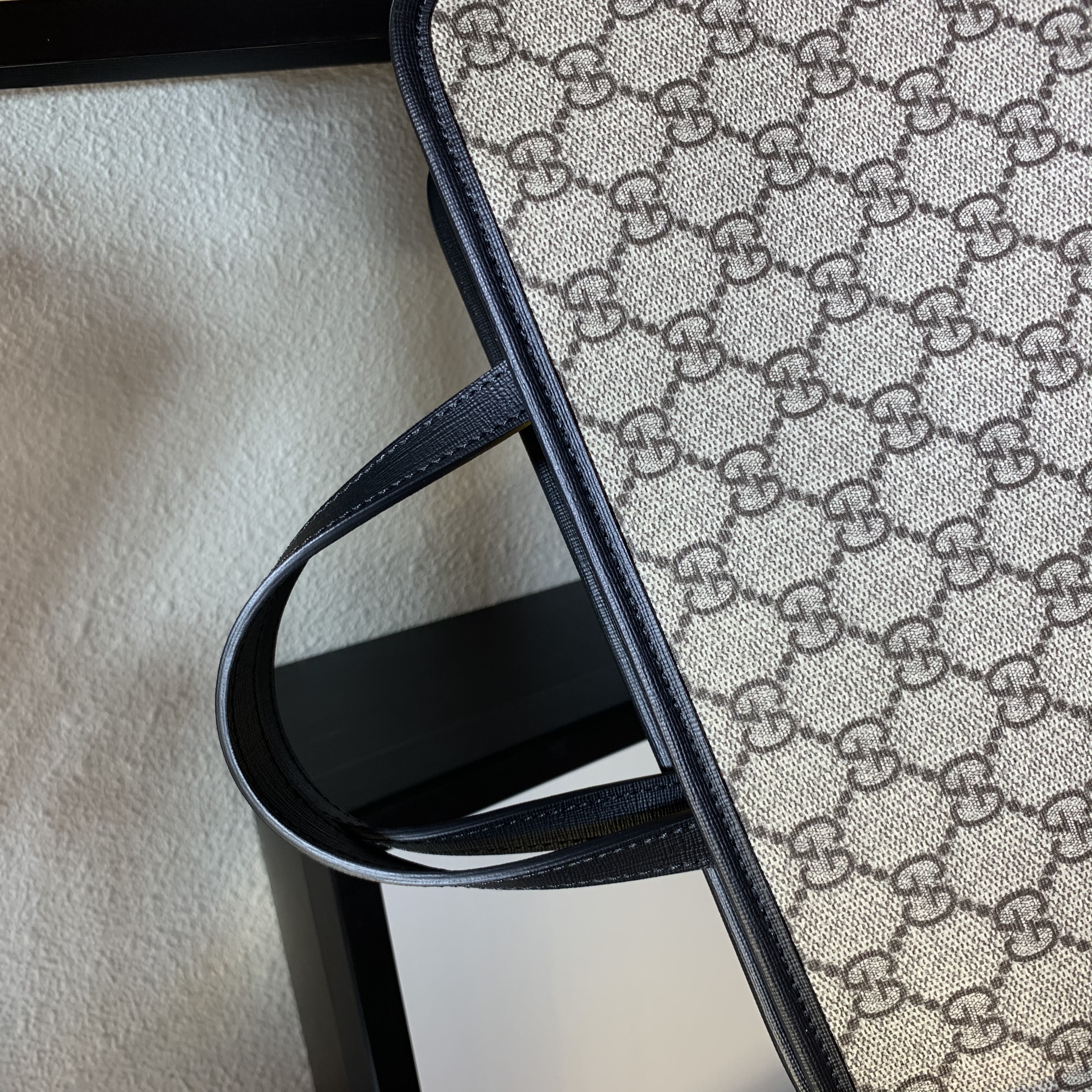 This exquisite Gucci GG Supreme Chicken Tote is constructed from the brand's signature GG Supreme canvas, renowned for its low environmental impact and exceptional durability. The canvas is meticulously detailed with black leather trim, which not only enhances the bag's structural integrity but also adds a luxurious tactile element.
