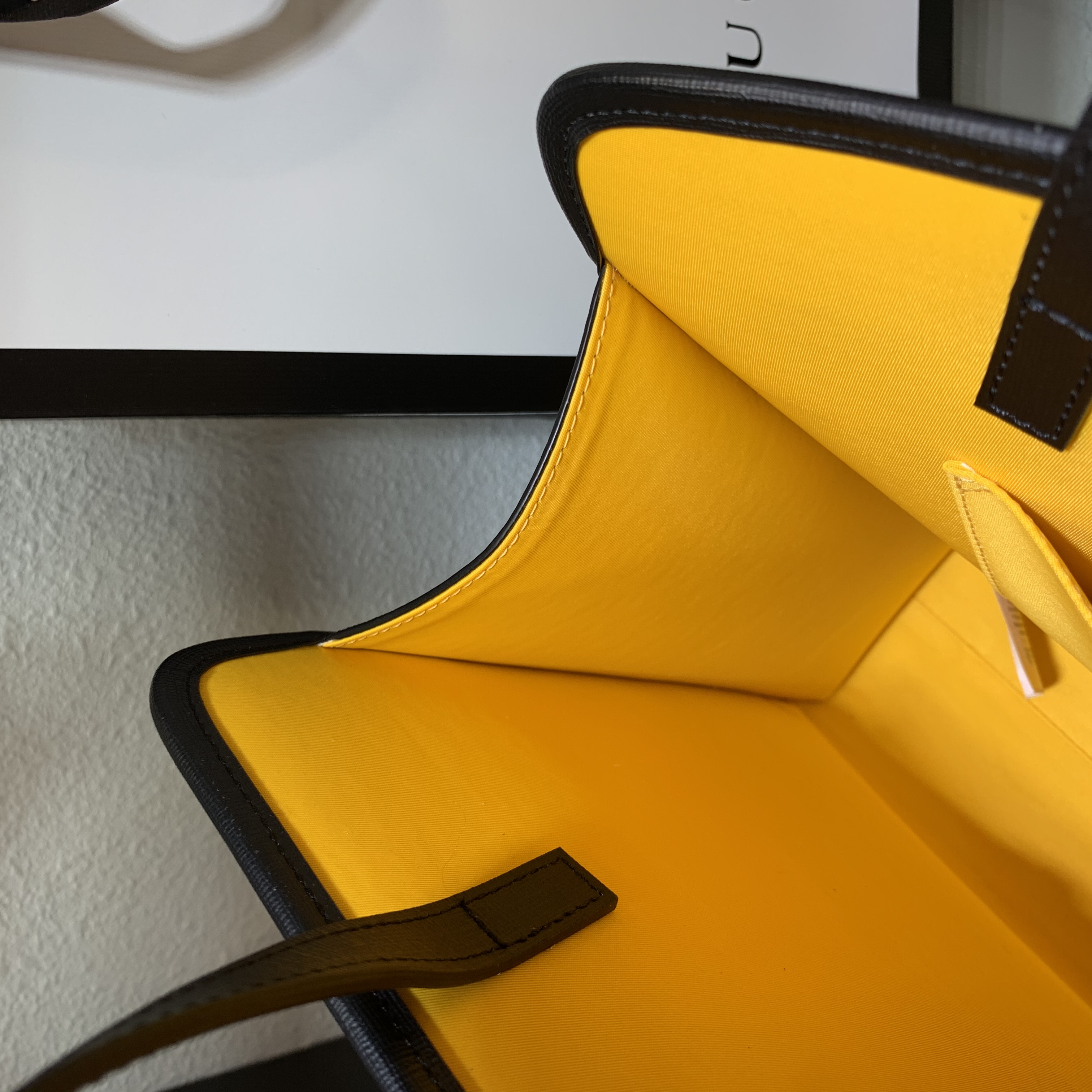 The bag features sturdy black leather top handles, designed for comfort and longevity. Inside, you can expect a well-appointed interior, often lined with a complementary fabric, providing a safe haven for your valuables. While specific dimensions vary, this tote typically offers generous space, making it ideal for daily essentials or a chic carry-all. The hardware, though subtly integrated, is crafted from polished metal, reflecting Gucci's commitment to superior quality in every detail. To delve deeper into the craftsmanship of luxury accessories, you can learn more about handbags and their intricate designs.