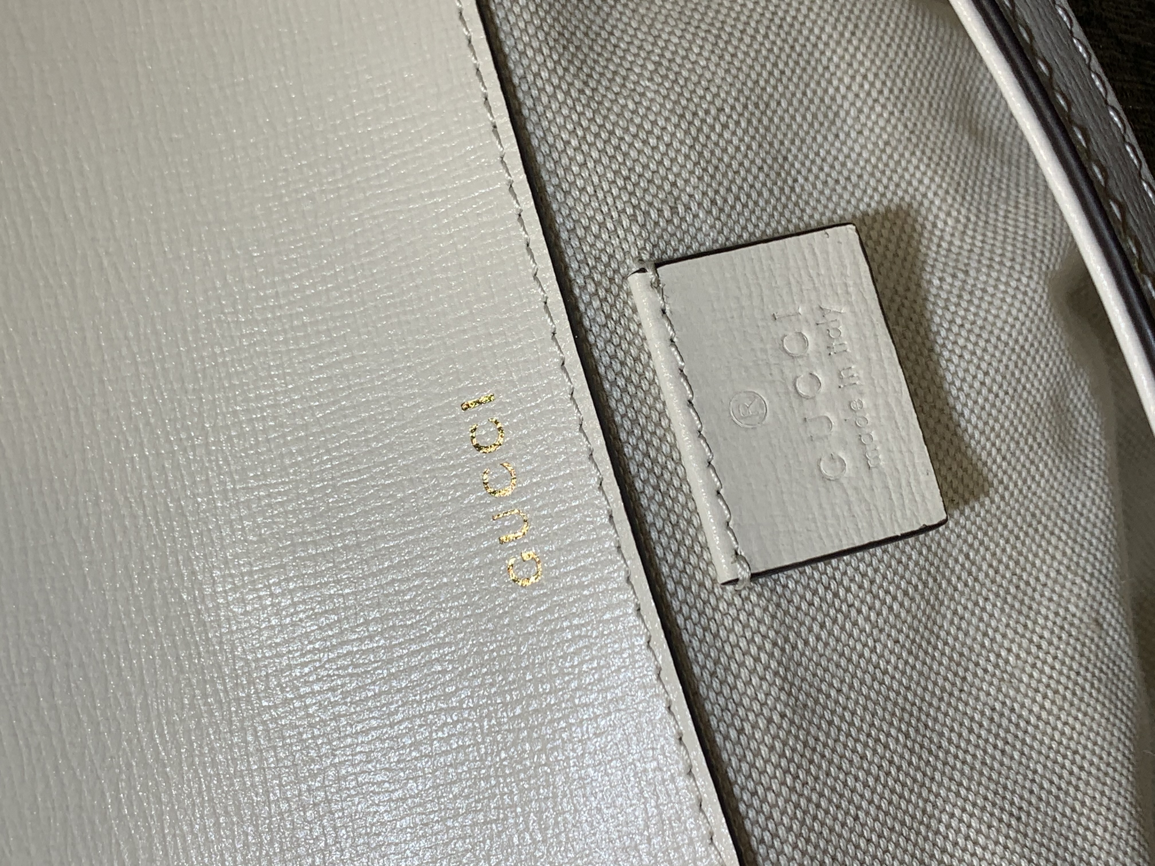 For cleaning the GG Supreme canvas, gently wipe with a soft, slightly damp cloth. The white leather trim can be carefully conditioned with a specialized, neutral leather cleaner, ensuring it remains supple and vibrant without discoloration.