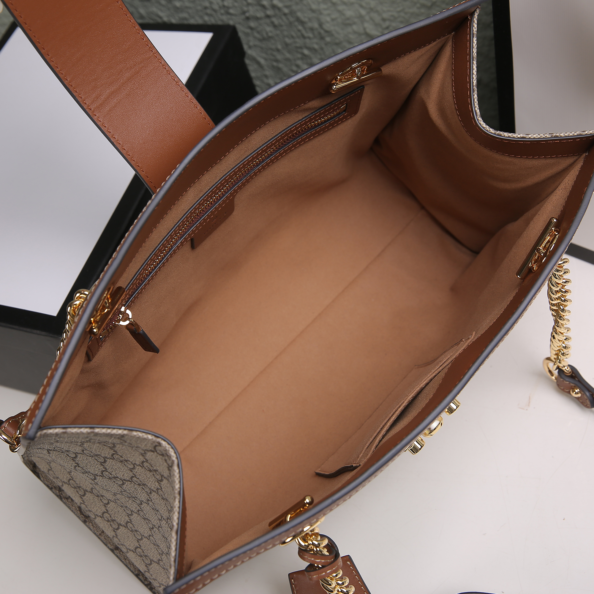 While specific dimensions may vary between the available sizes (as seen in the image, a larger and smaller version exist), both offer well-proportioned interiors. They are designed to comfortably hold your daily essentials, from a wallet and phone to cosmetics and keys. For those keen to learn about handbags and their construction, the attention to detail in this Gucci piece truly stands out.