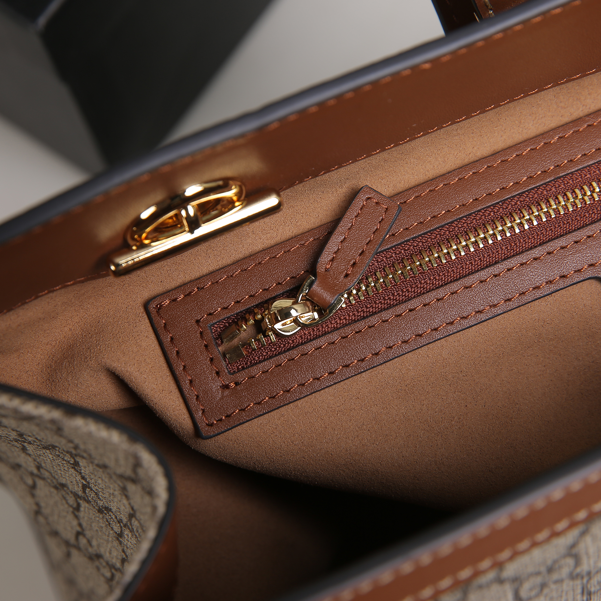 • Luxurious Leather Trim: Beautiful brown leather accents provide a sophisticated contrast and enhance the bag's structural integrity.