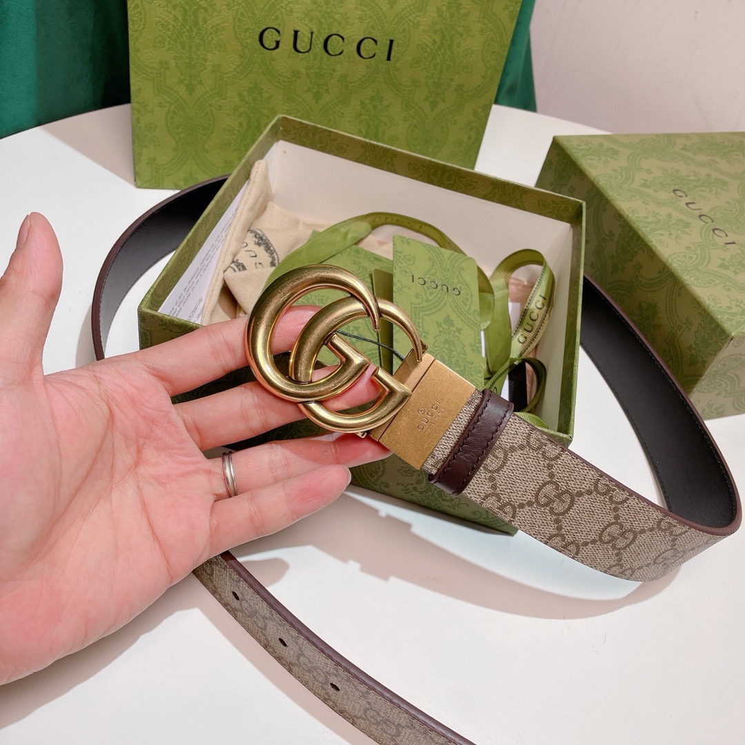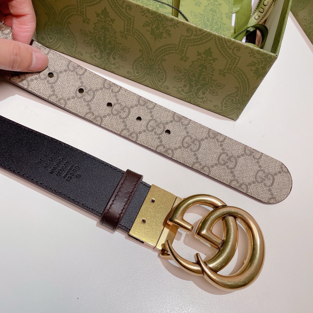 Gucci Black Smooth Calfskin Leather Gold Double G Buckle Belt 90/36