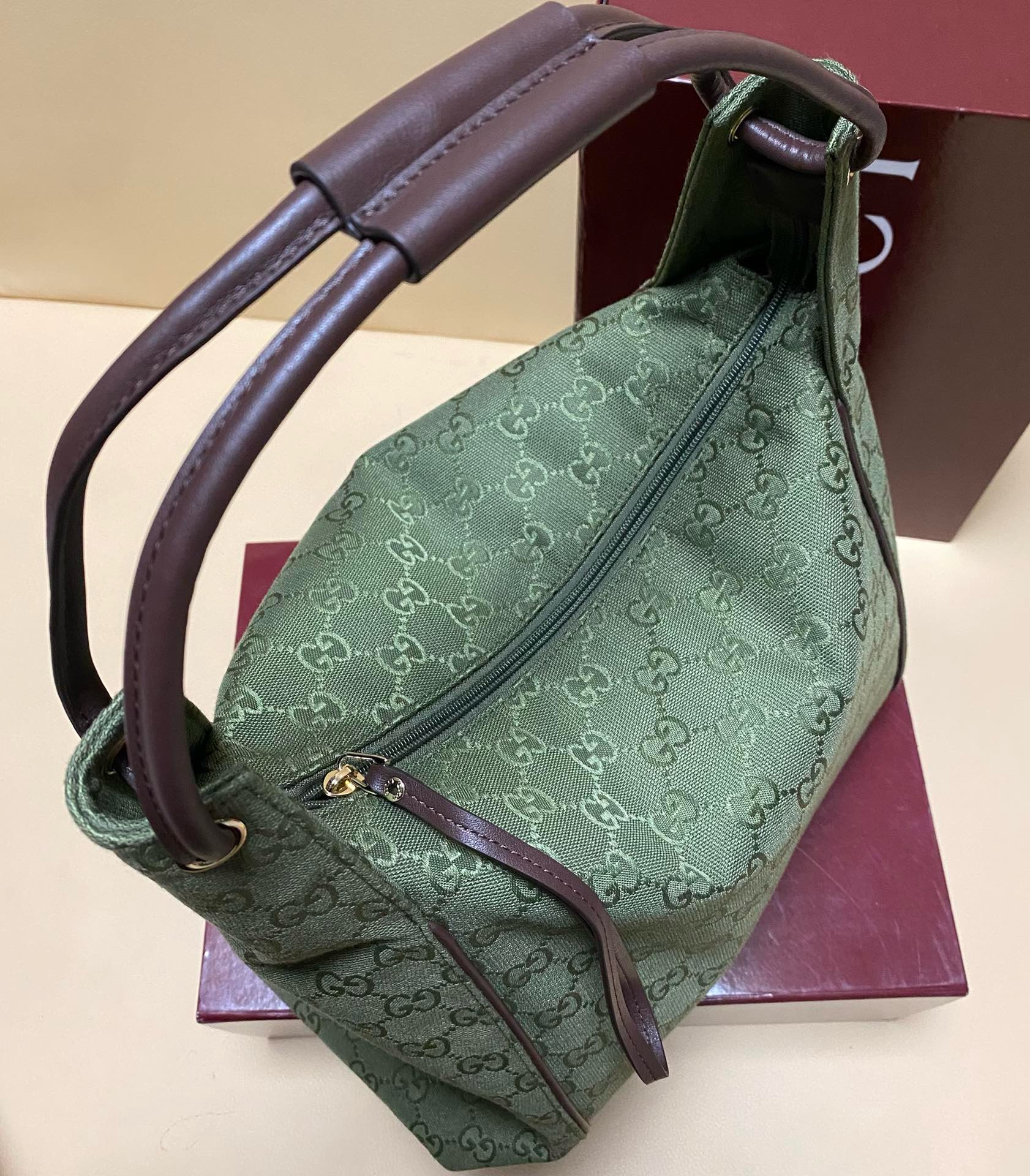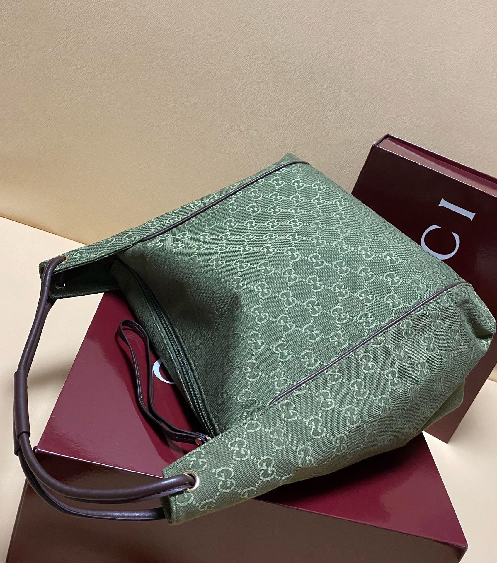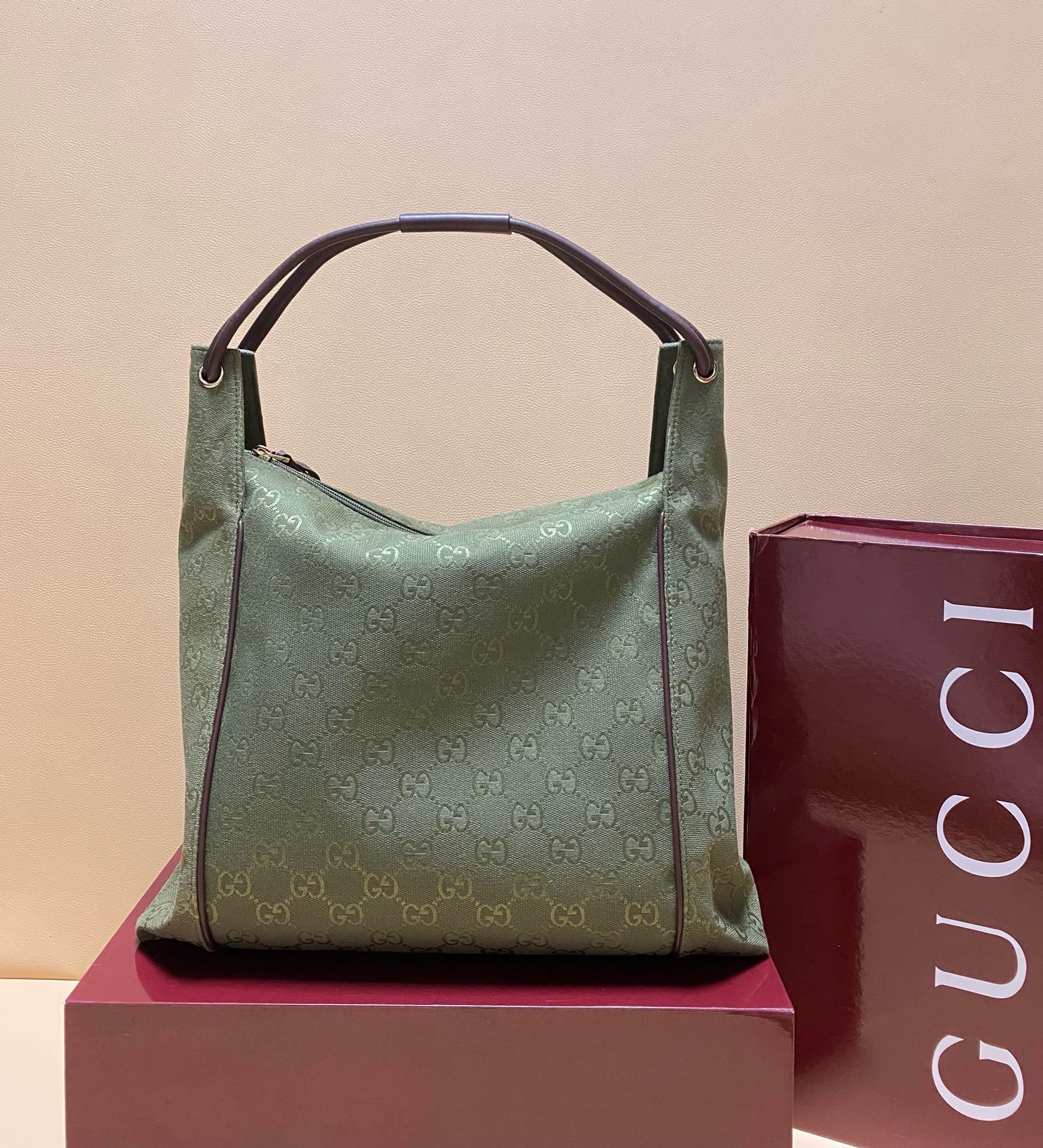 GUCCI Canvas Monogram Hobo Green