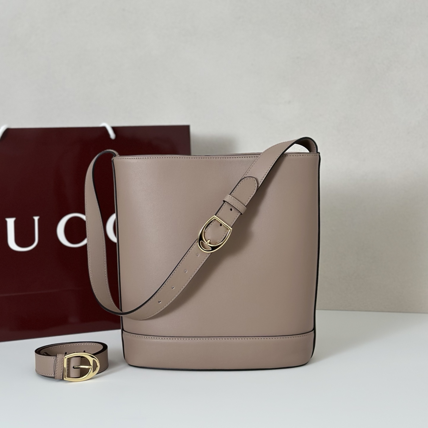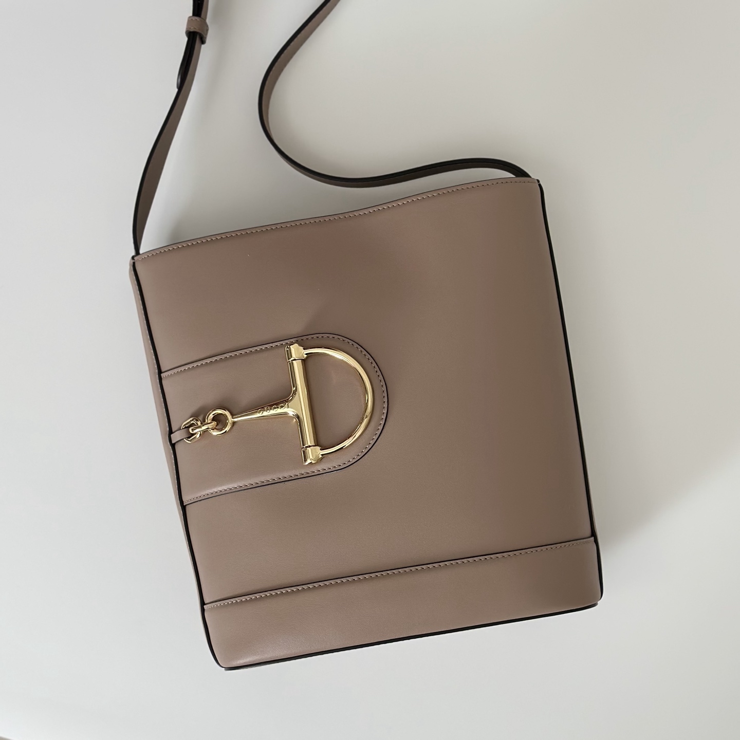 Gucci Gucci 73 small bucket bag in taupe leather | GUCCI