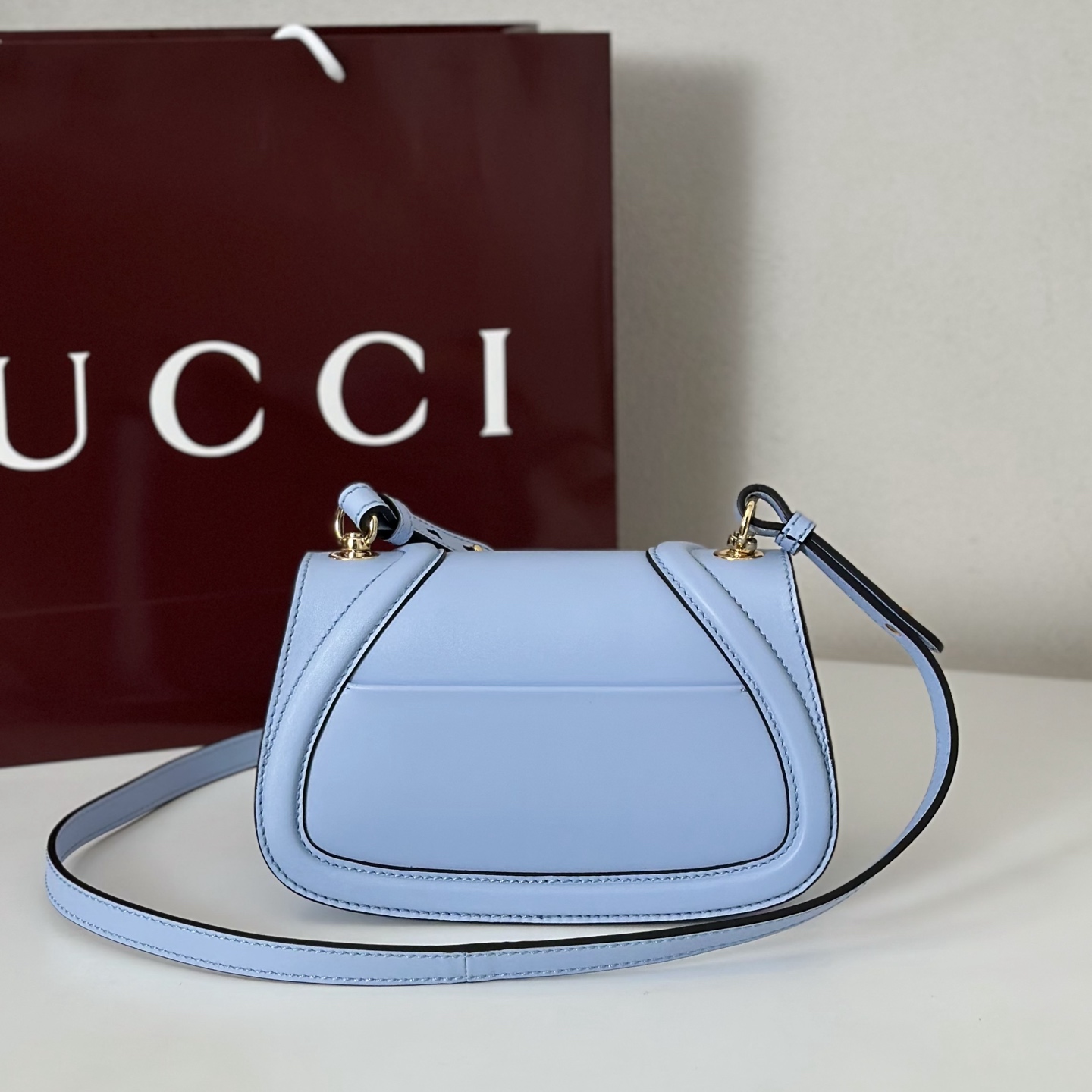 Gucci Gucci Blondie medium top handle bag in light blue leathe