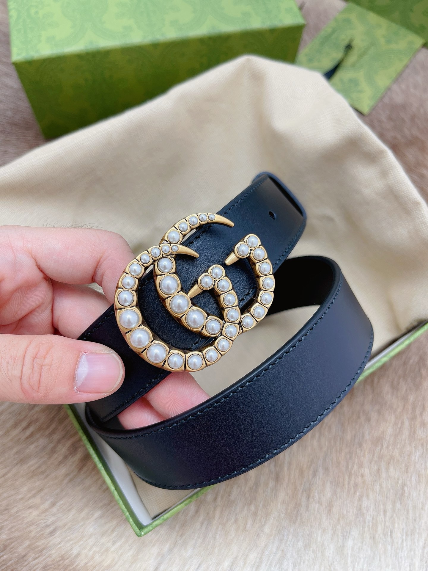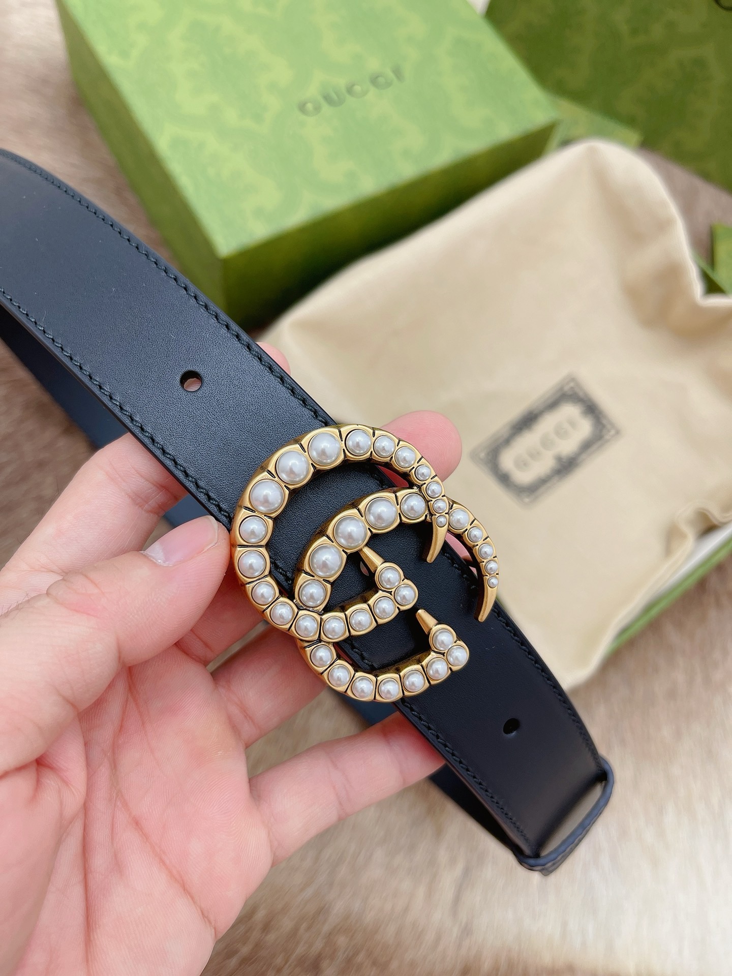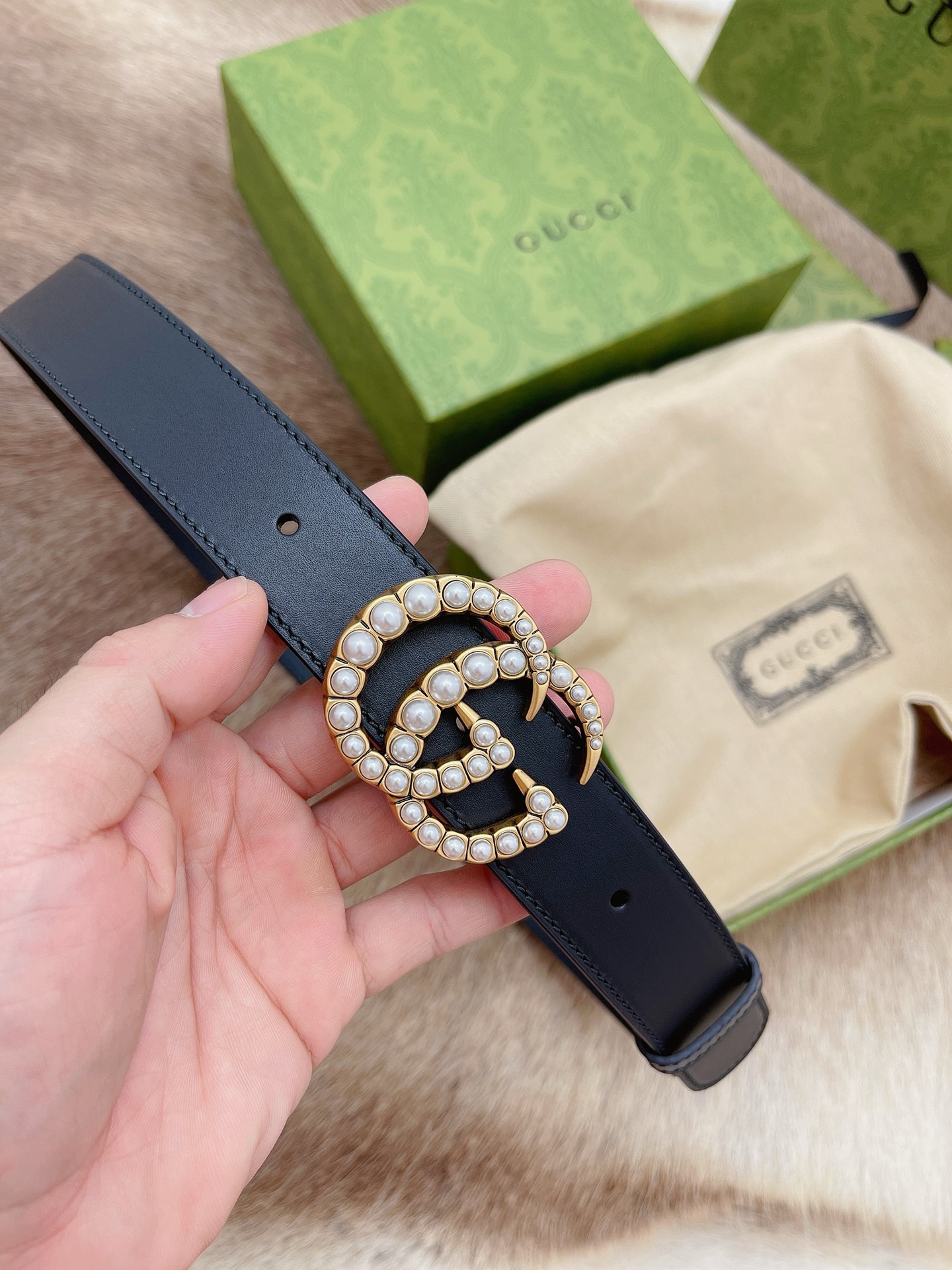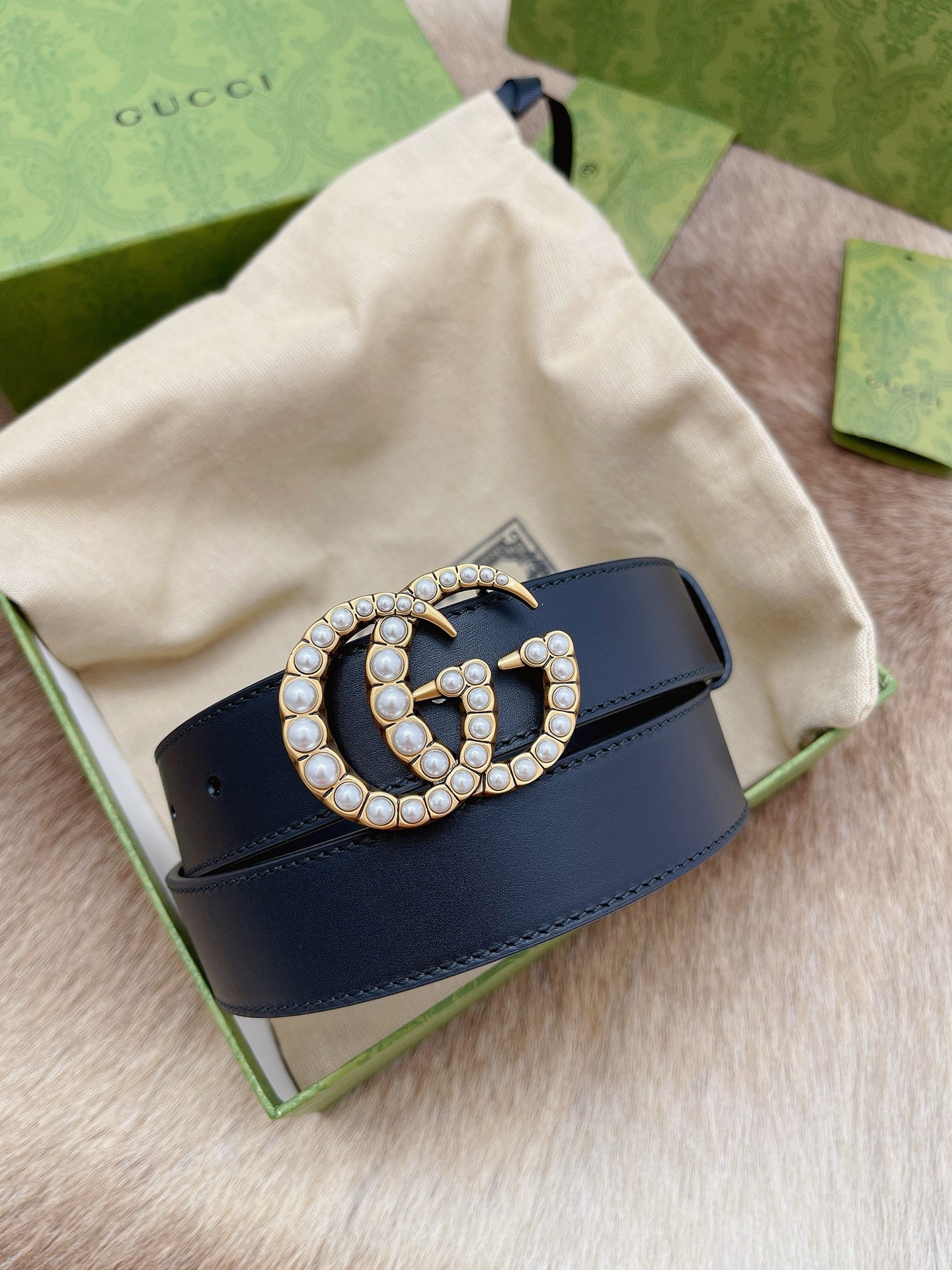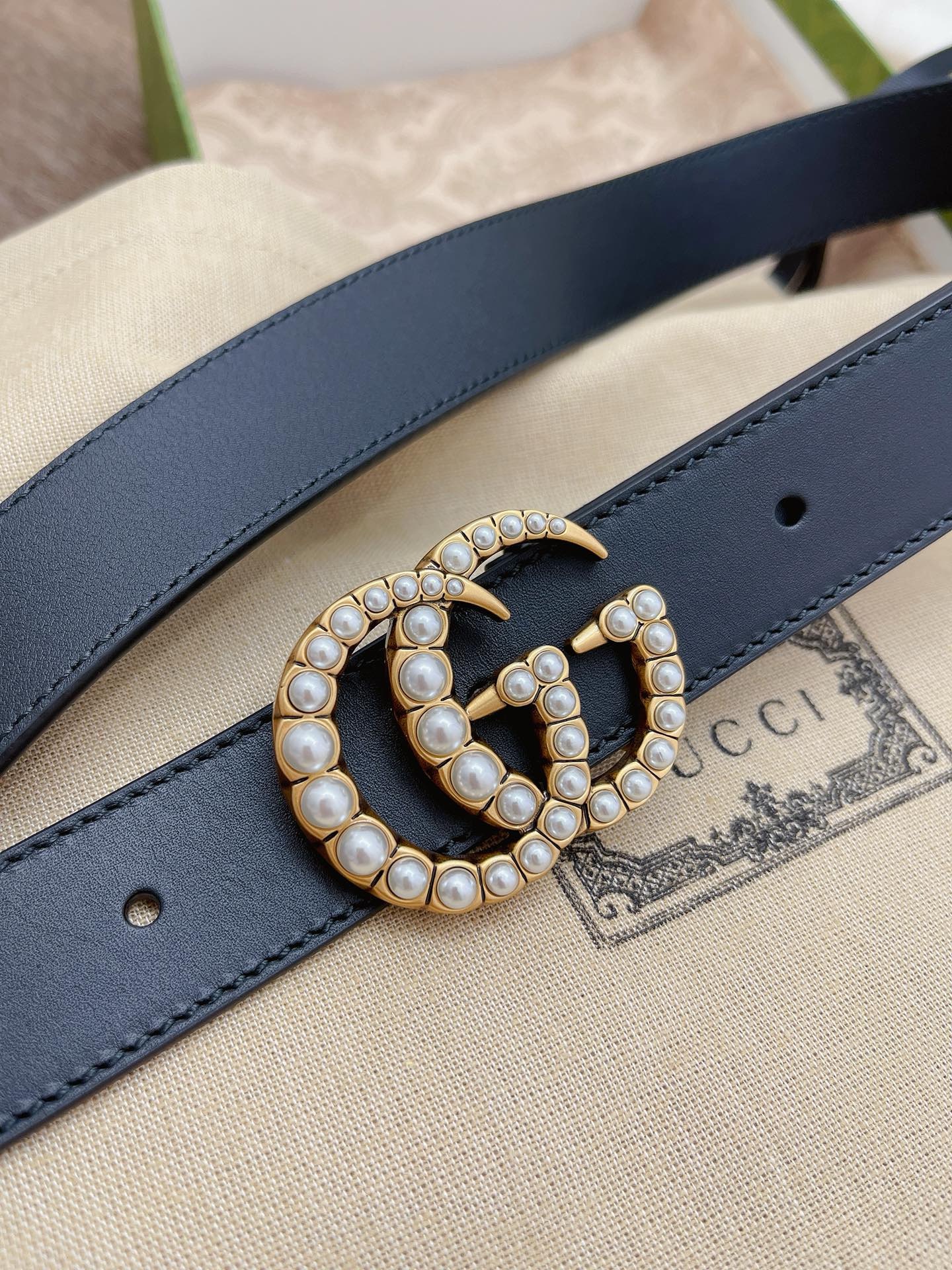 GG Marmont thin belt with beading
