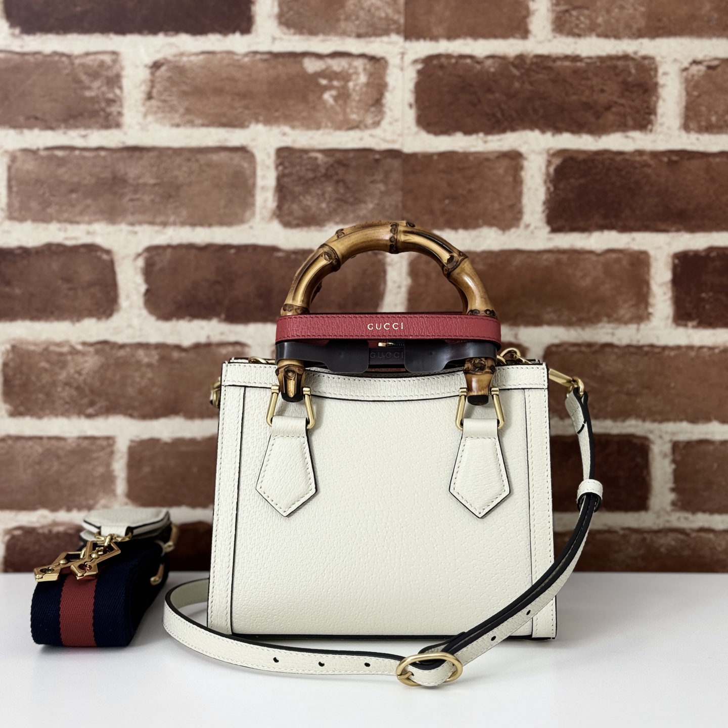 Gucci Handbag Bamboo Diana 702732 White Leather