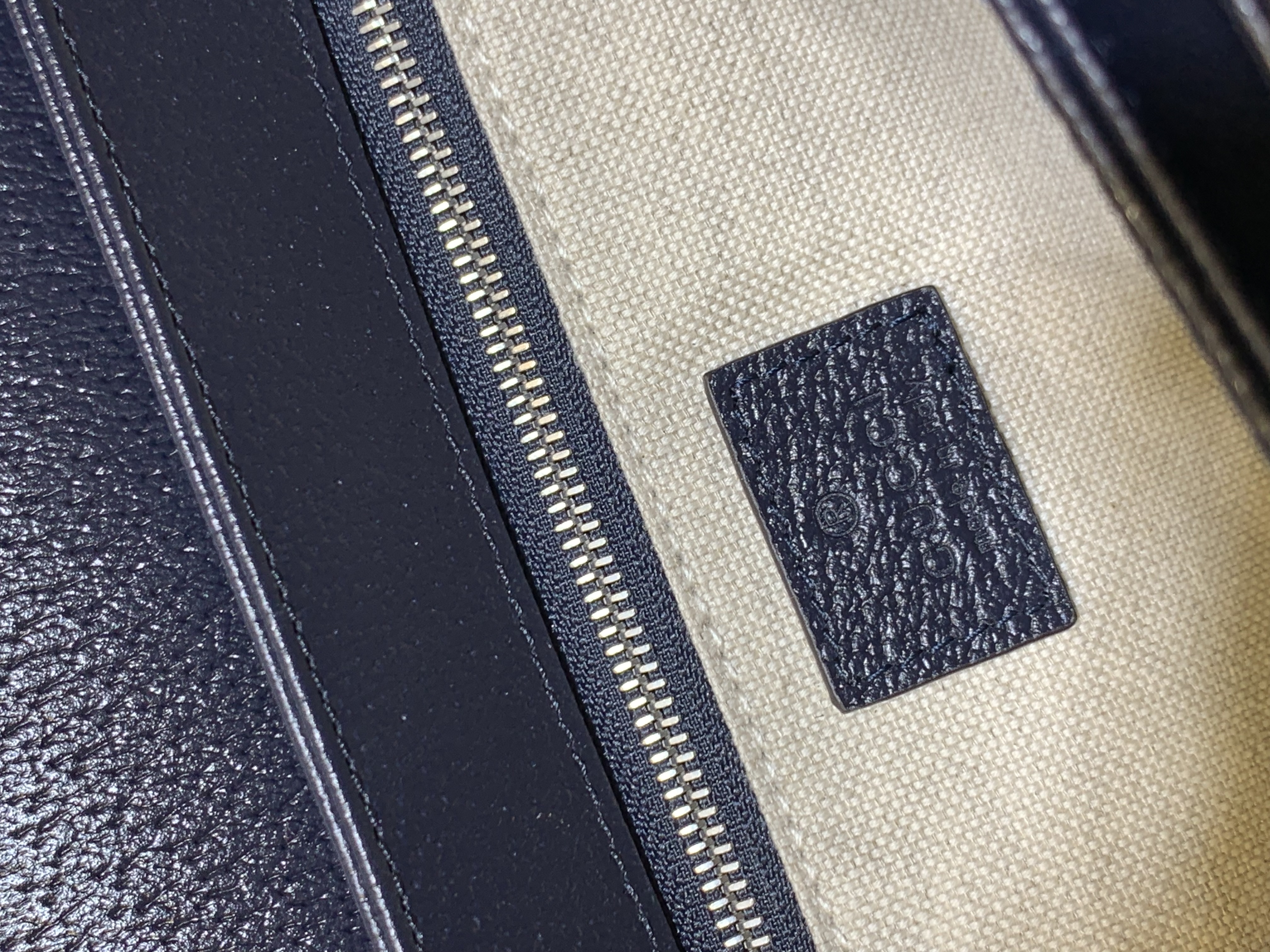 • GG Supreme Canvas: Durable and instantly recognizable beige/ebony GG Supreme canvas with navy monogram.