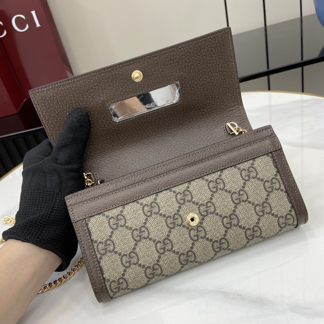 Gucci Horsebit 1955 wallet on chain in beige and dark brown