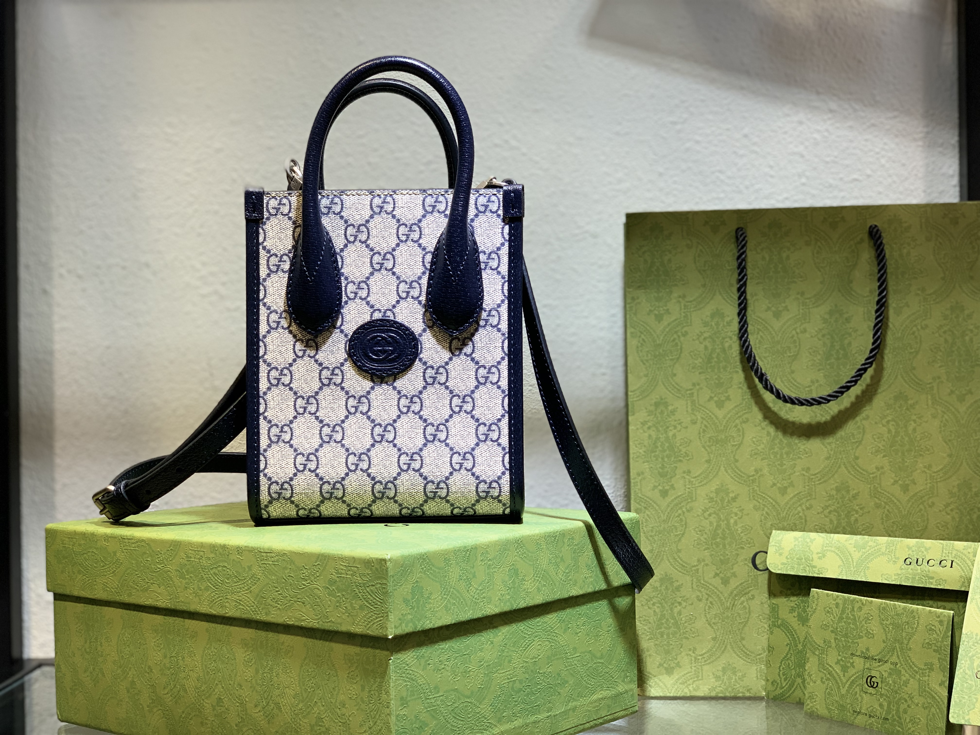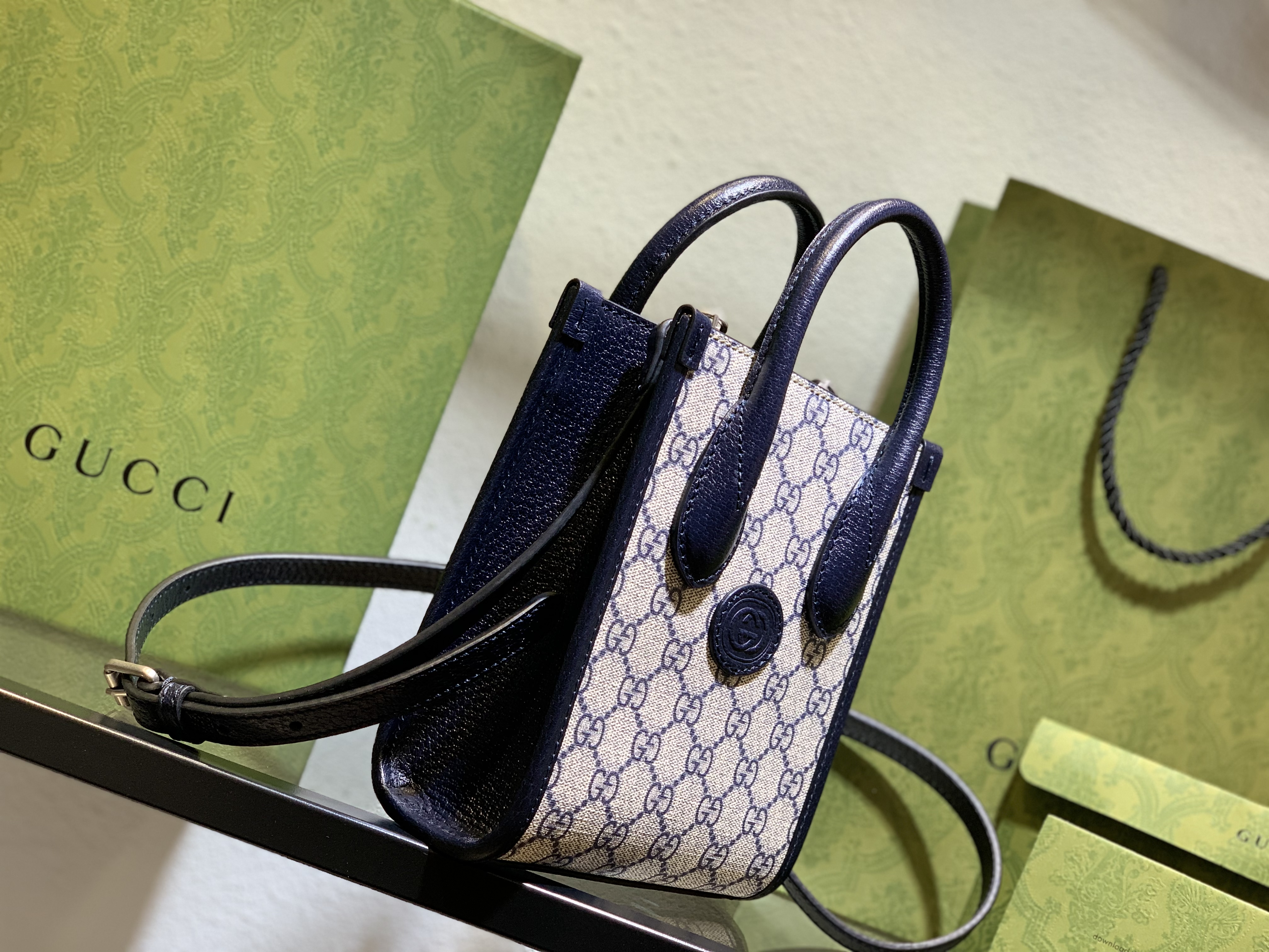 Gucci Interlocking G Mini Tote Bag Gray Black