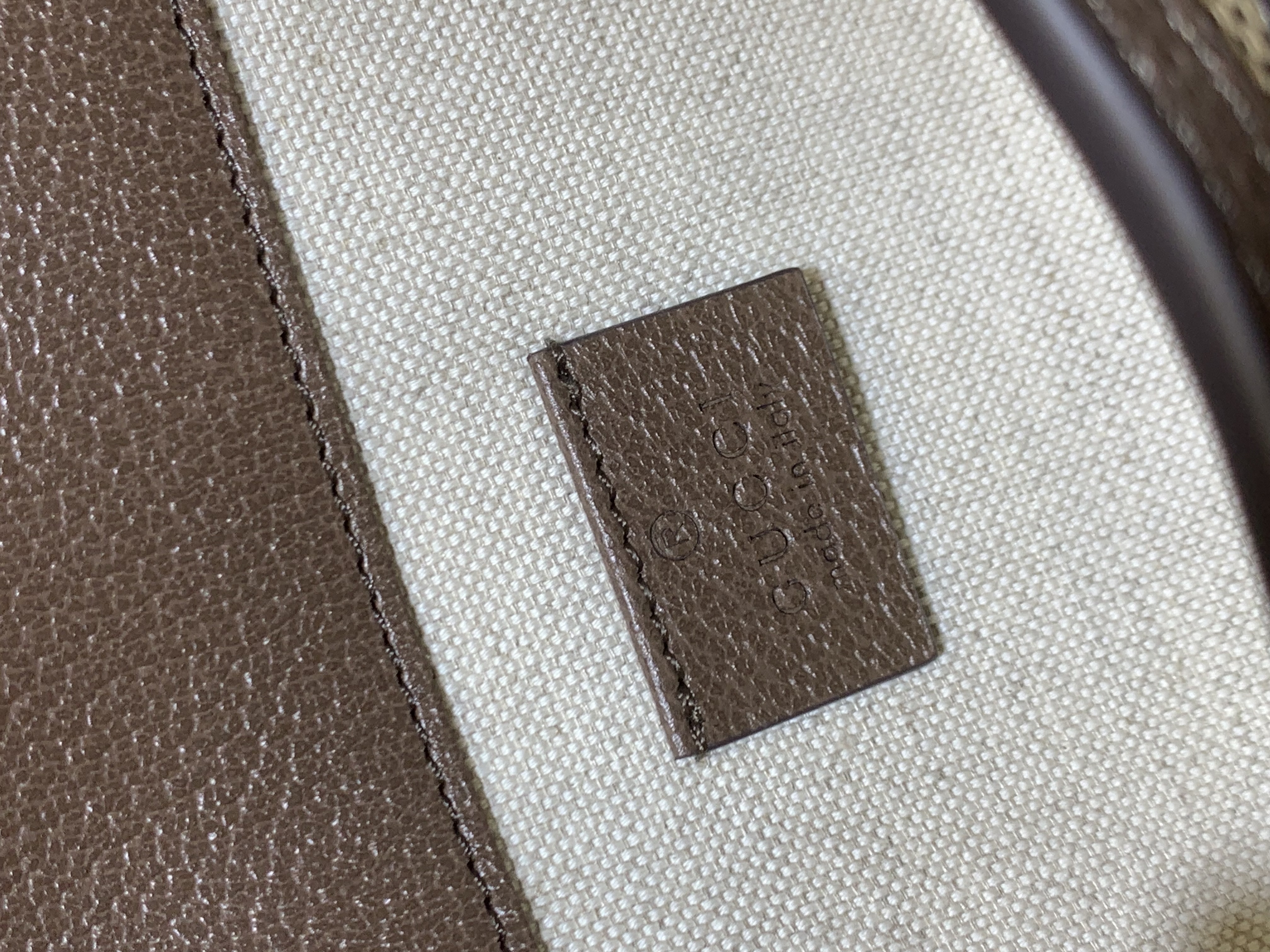 The Horsebit detail, originating from Gucci's equestrian history, serves as both a functional closure and a distinguished ornamental element. Its gold-tone gleam beautifully complements the earthy tones of the canvas and leather. The structured silhouette of the bag maintains a sophisticated profile, making it a versatile piece that can elevate both casual and formal ensembles.