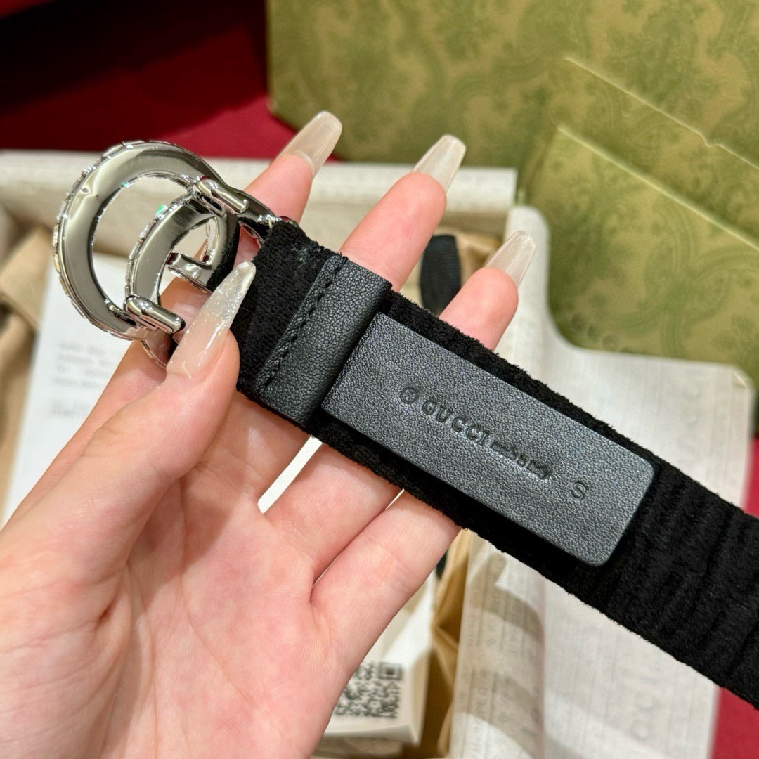 Gucci NWT Auth Women 95 cm 38 in Black Suede Leather Square G Gold Tone Belt Bag My Fashion Butler My Fashion Butler (11647)