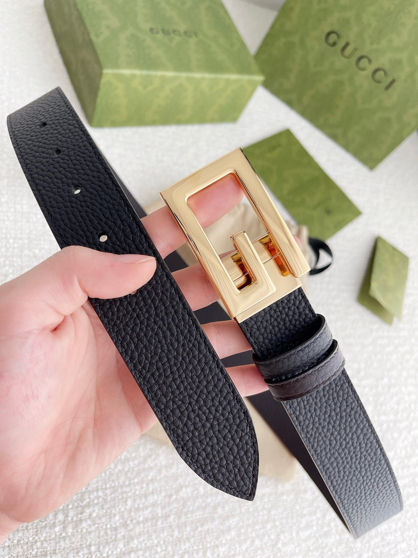 Authentic Gucci Black Textured Wide Leather Signature Double G Buckle Belt 80/32