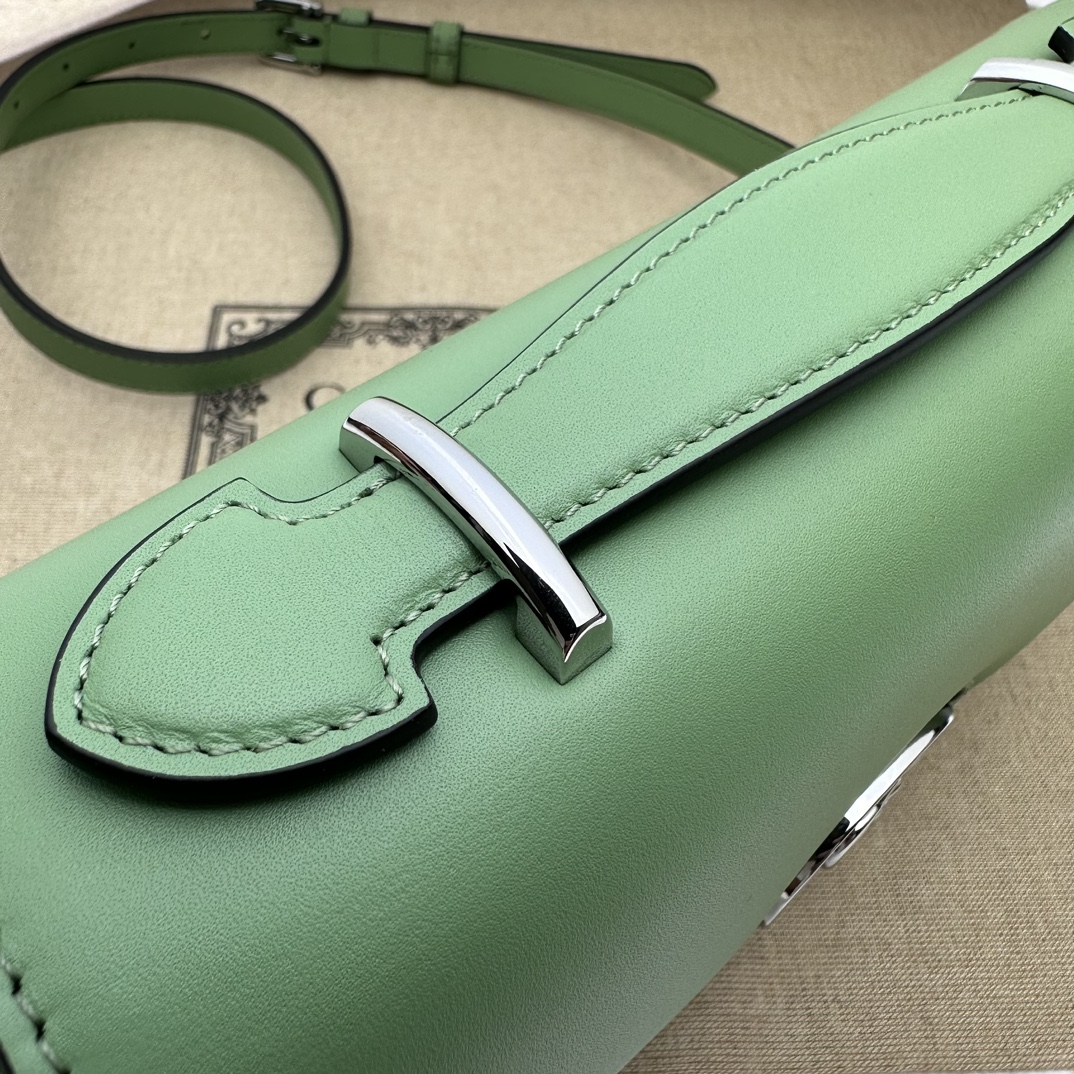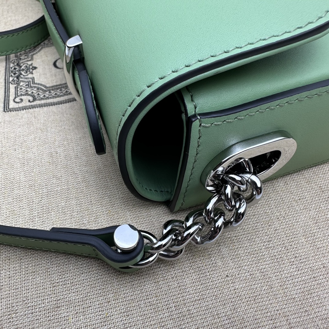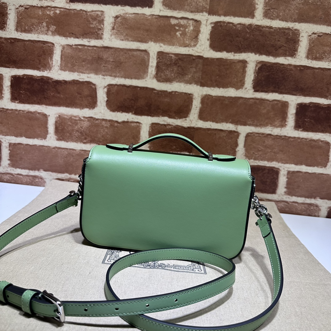 Gucci Petite GG Mini Shoulder Bag Light Green in Leather with Silver-tone