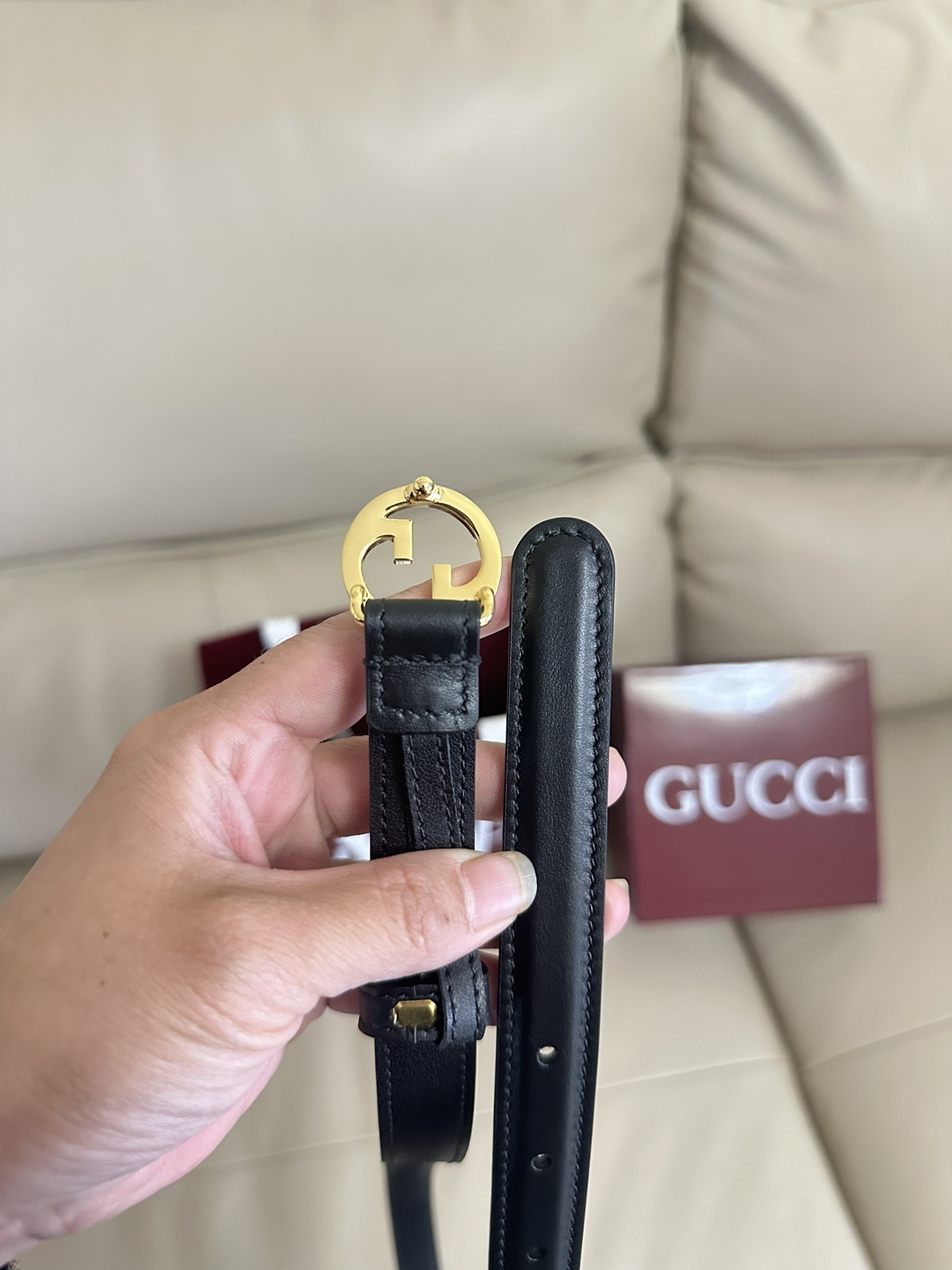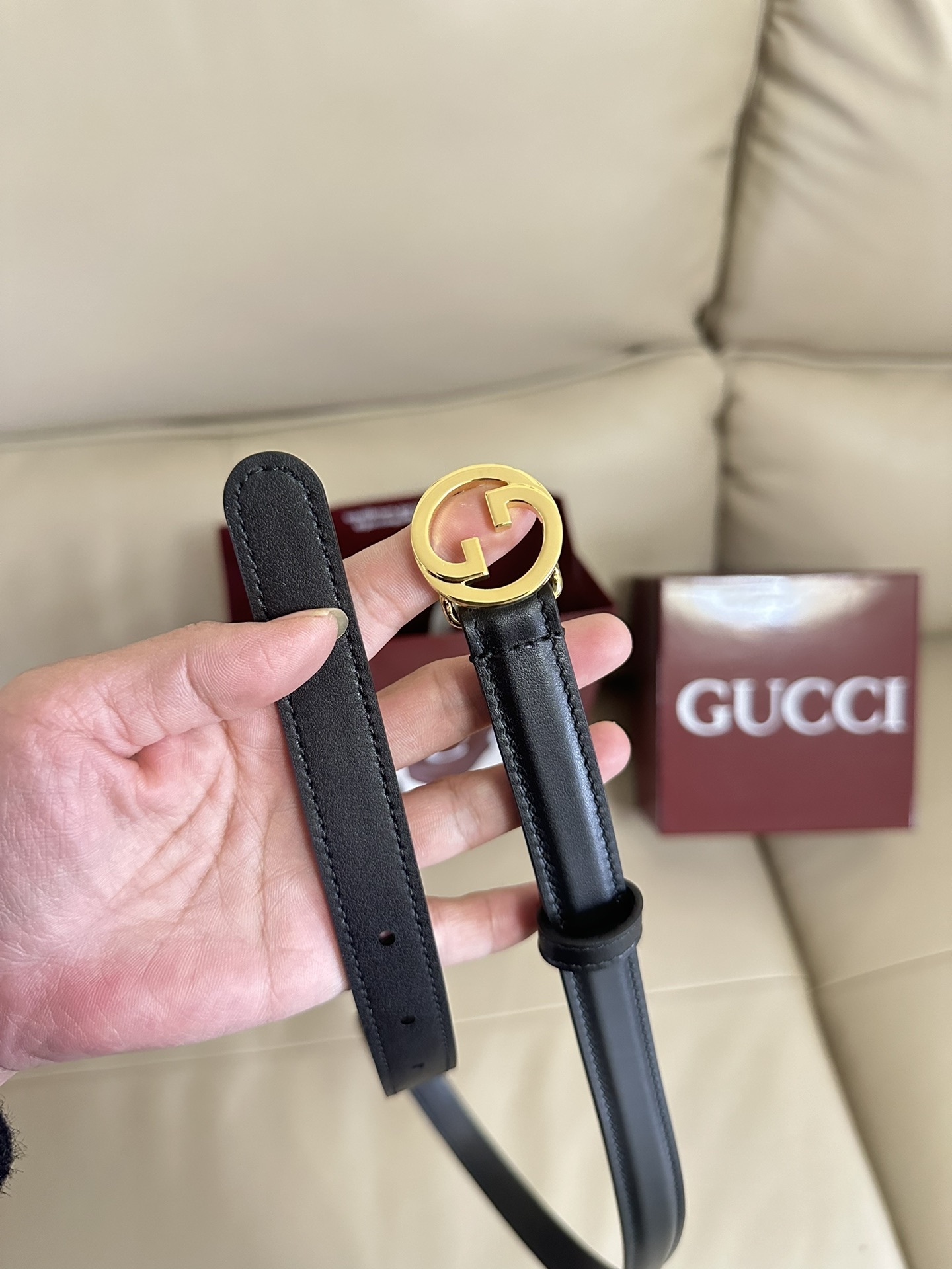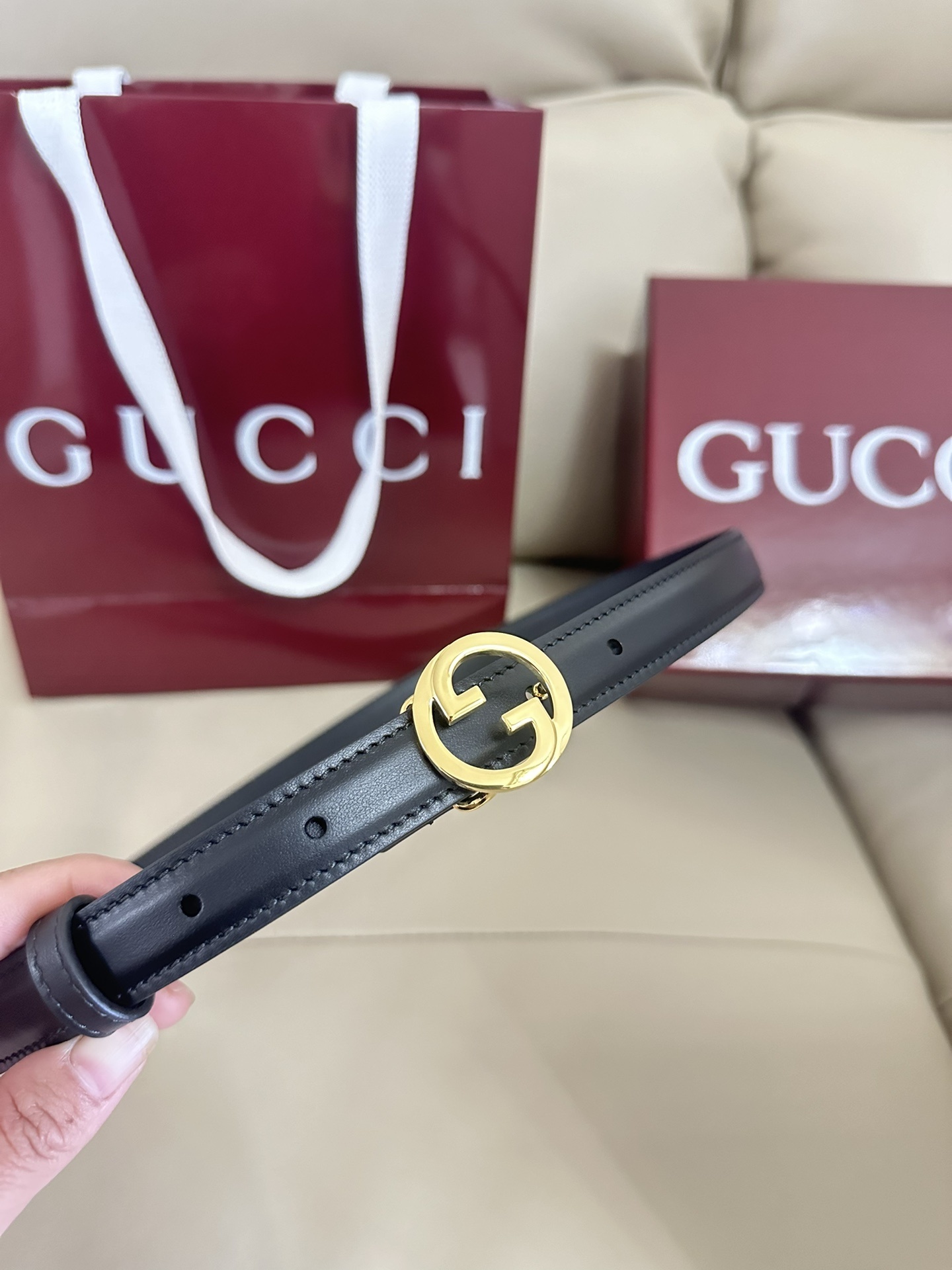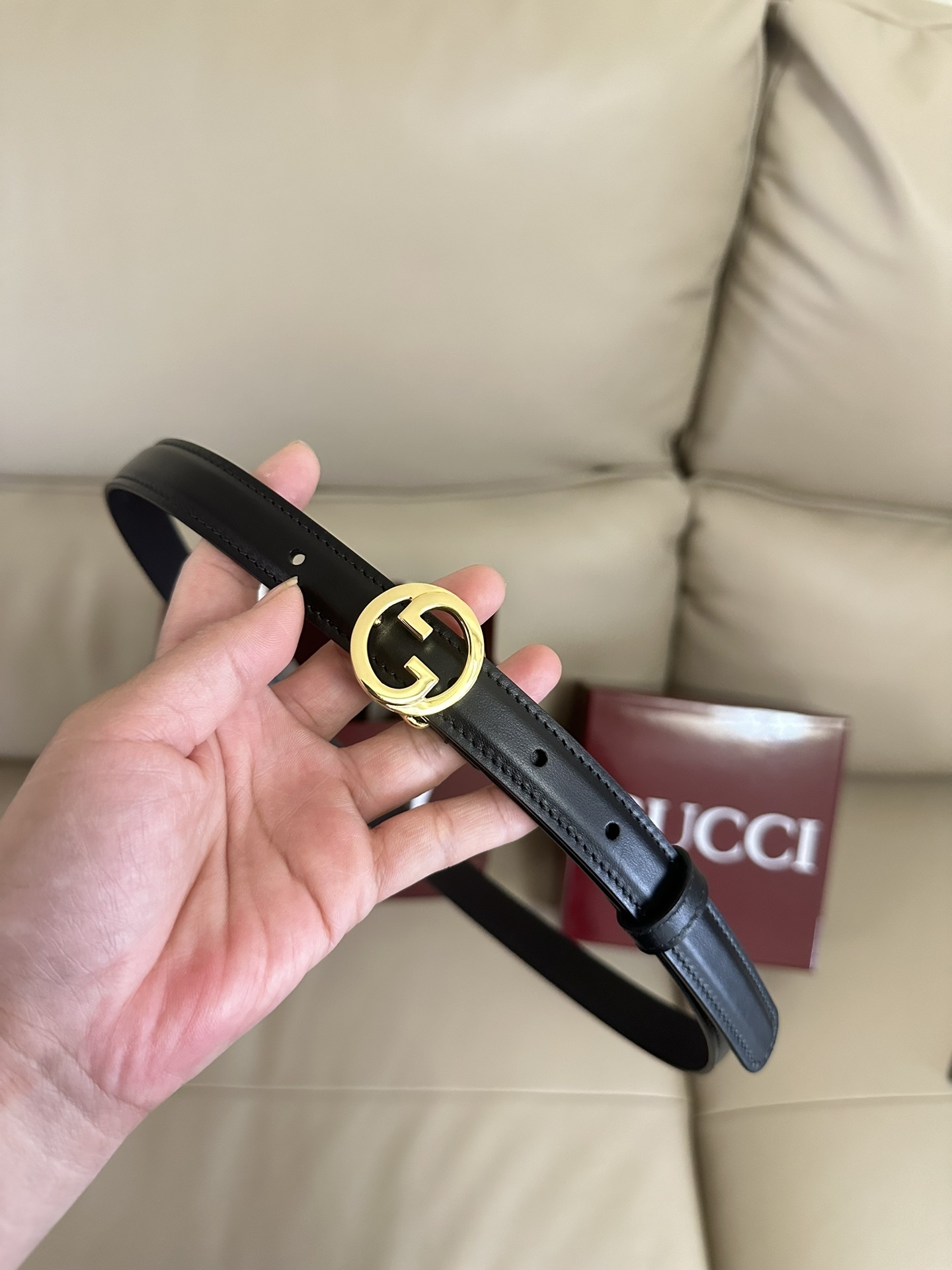 Gucci Inspired Premium Leather Belt - Gold Buckle