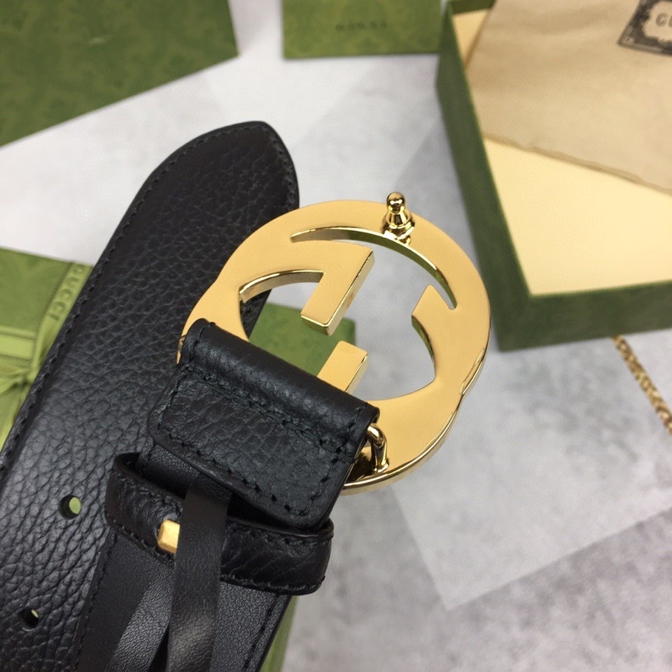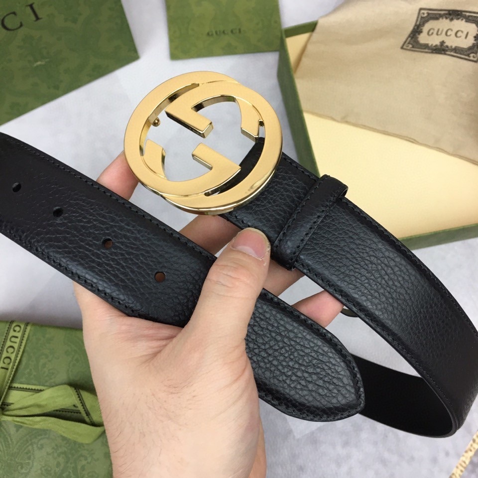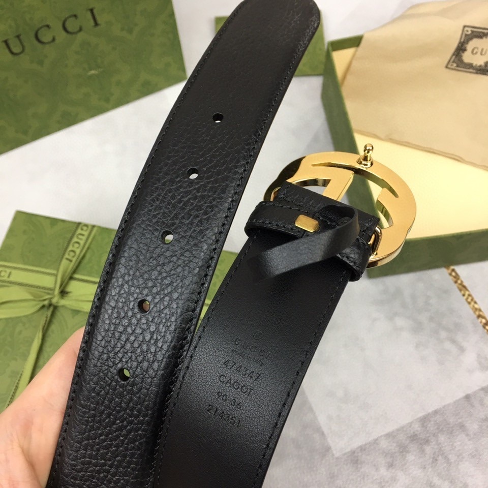 Premium Black Leather Belt with Gold GG Buckle