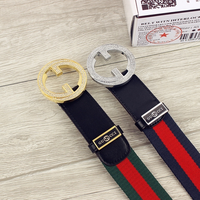 This stunning belt showcases the iconic Gucci design, meticulously crafted with the finest materials. The high-quality leather ensures durability and a luxurious feel, while the signature Gucci buckle, adorned with sparkling accents, adds a touch of glamour.