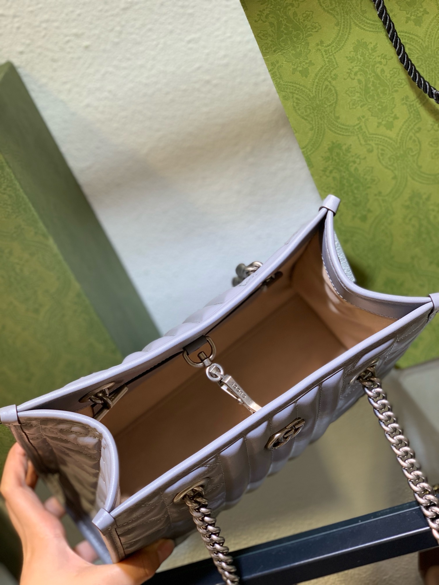 For routine cleaning, gently wipe the leather exterior with a soft, dry cloth to remove any surface dust or light marks. For more stubborn stains or marks, use a specialized leather cleaner specifically formulated for luxury items, always testing it first on an inconspicuous area. Keep the silver-tone hardware sparkling by polishing it regularly with a non-abrasive cloth. With diligent and consistent care, your Gucci bag will remain a cherished and beautiful item in your collection for many years to come. To further enhance your knowledge on maintaining luxury accessories, you can learn about handbags on Wikipedia.