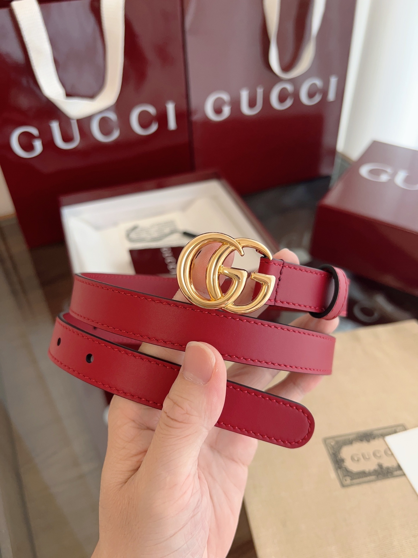 Gucci Red Leather Belt with Gold GG Buckle - Premium Quality