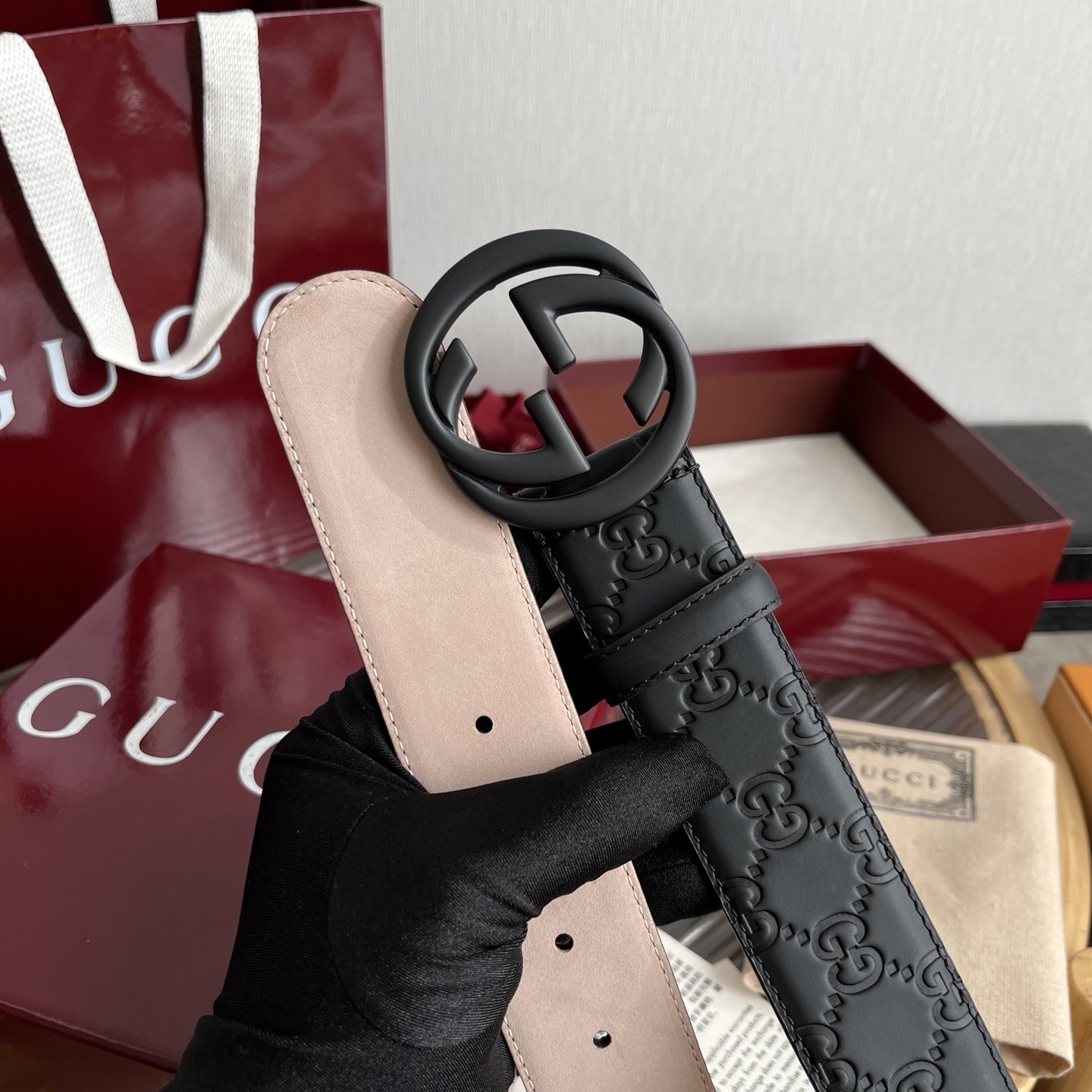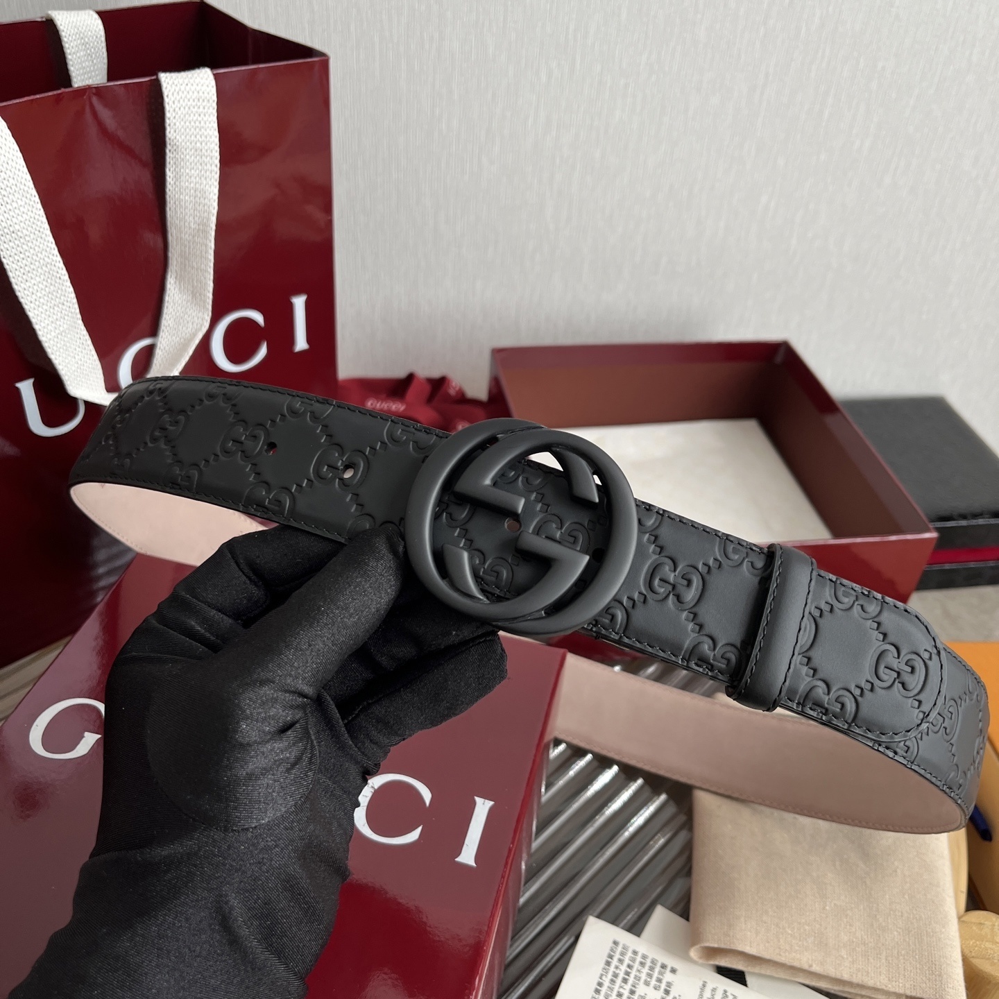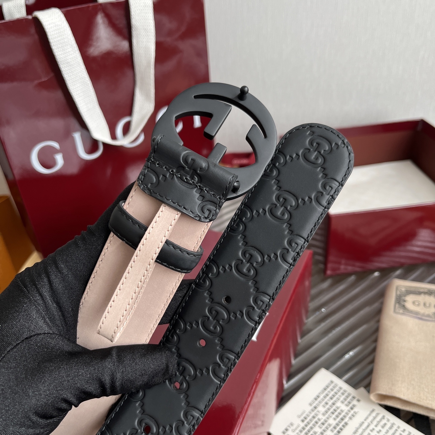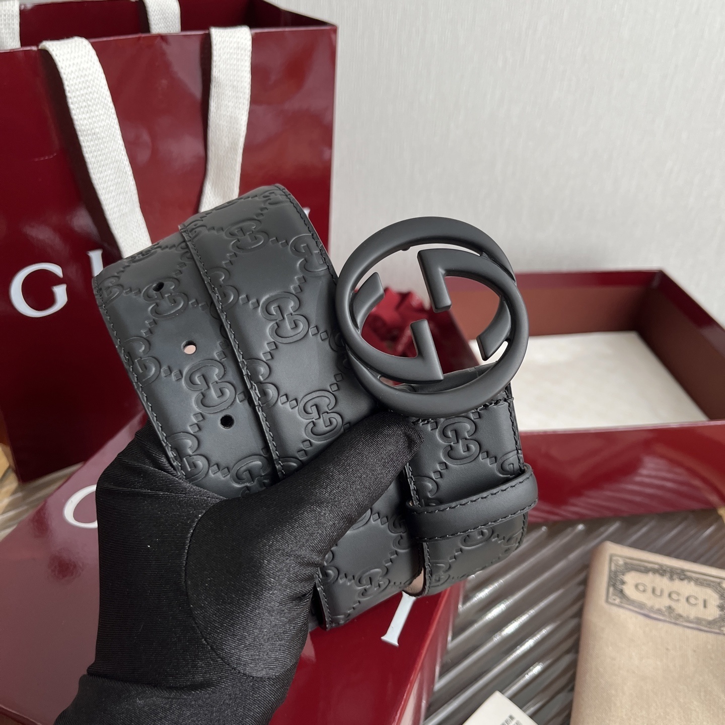 Gucci Embossed Leather Belt - Premium Quality