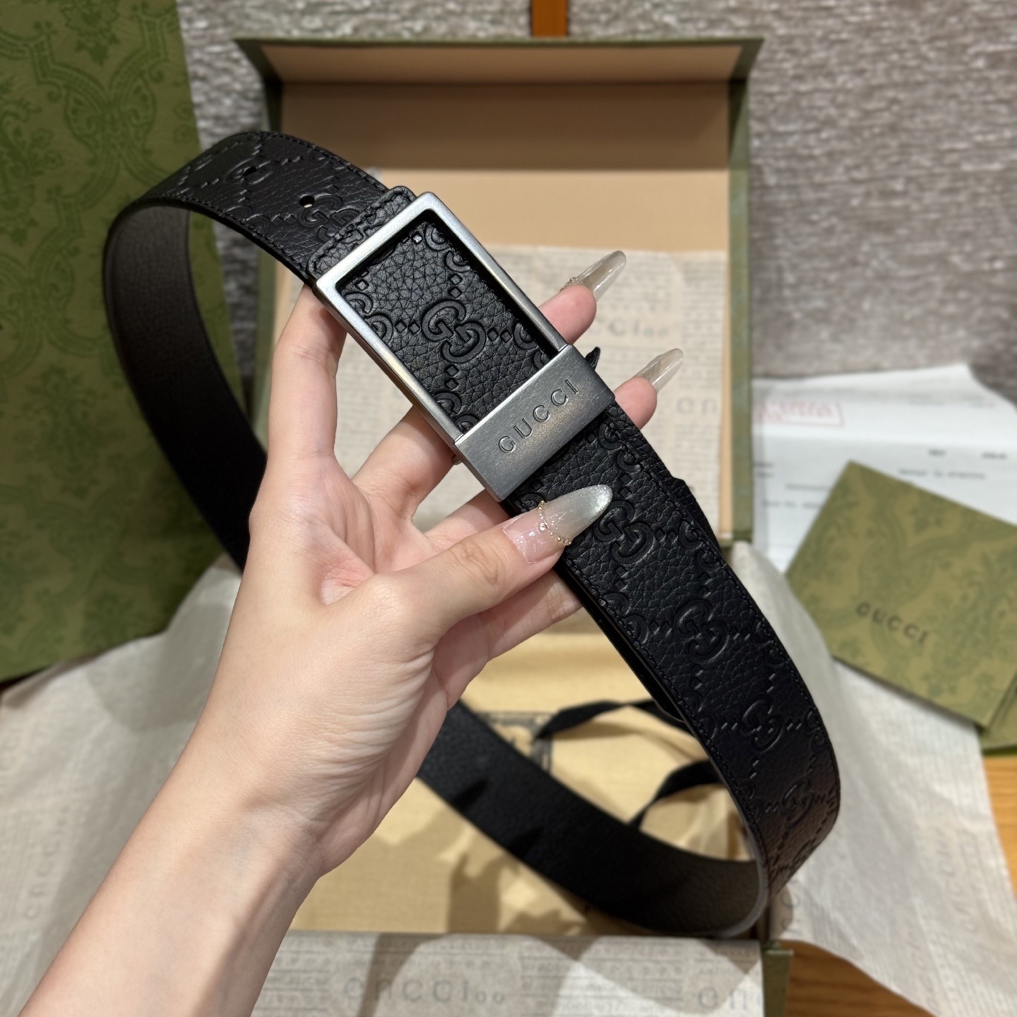 Gucci Embossed Leather Belt - Premium Quality