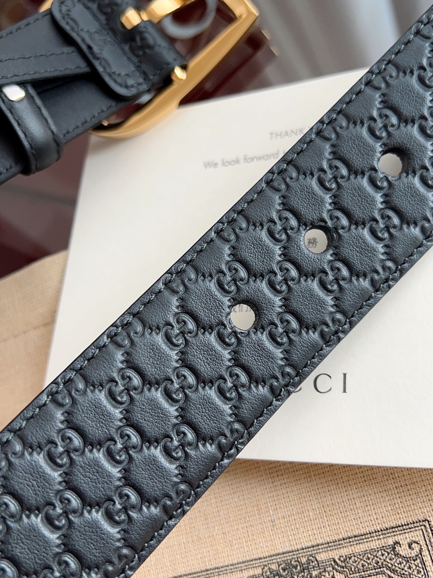 Premium Black Leather Belt with Gold GG Buckle
