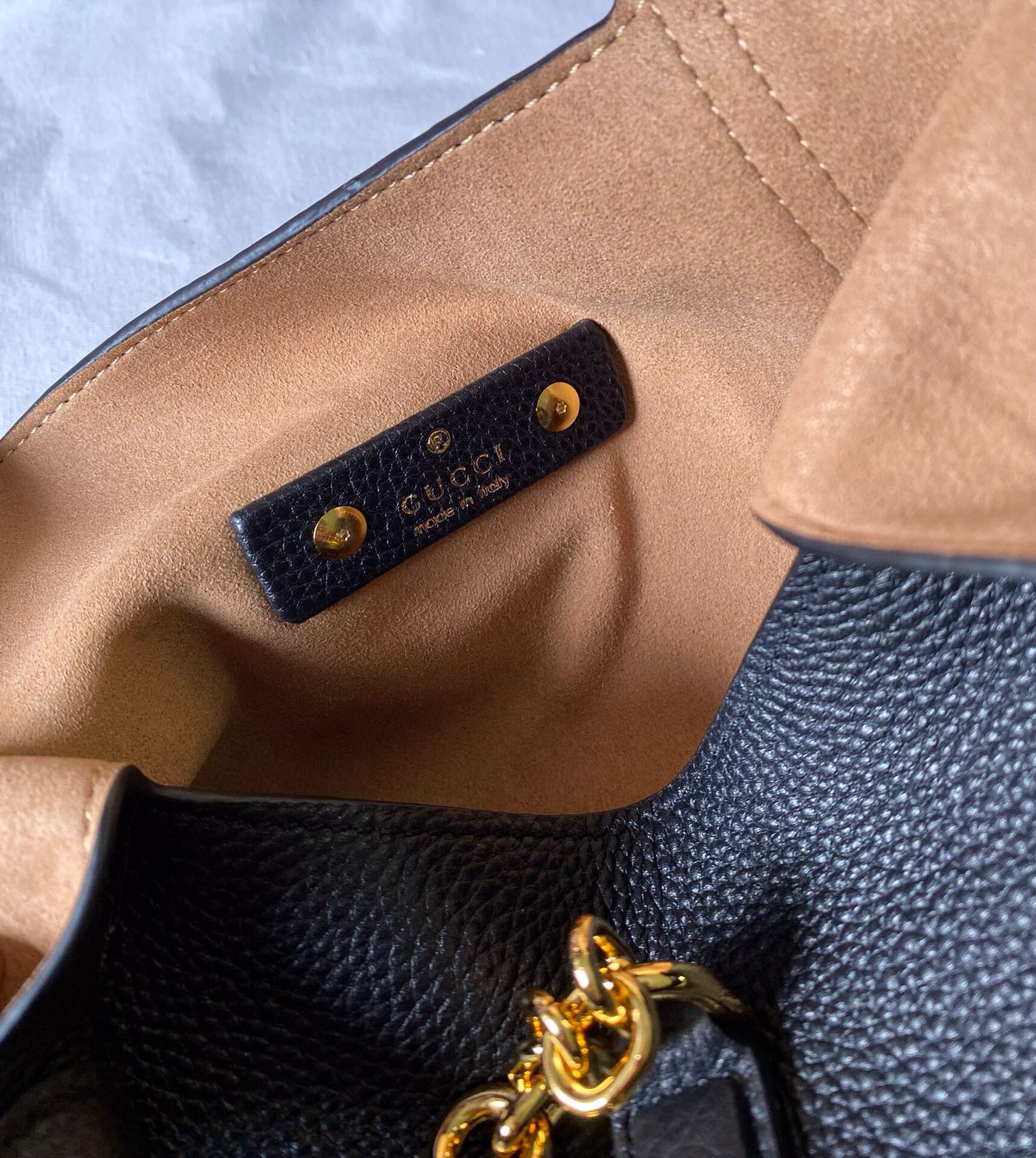 • Subtle Embossed Branding: Discreet Gucci branding on the hardware and interior, confirming its authenticity and prestige.