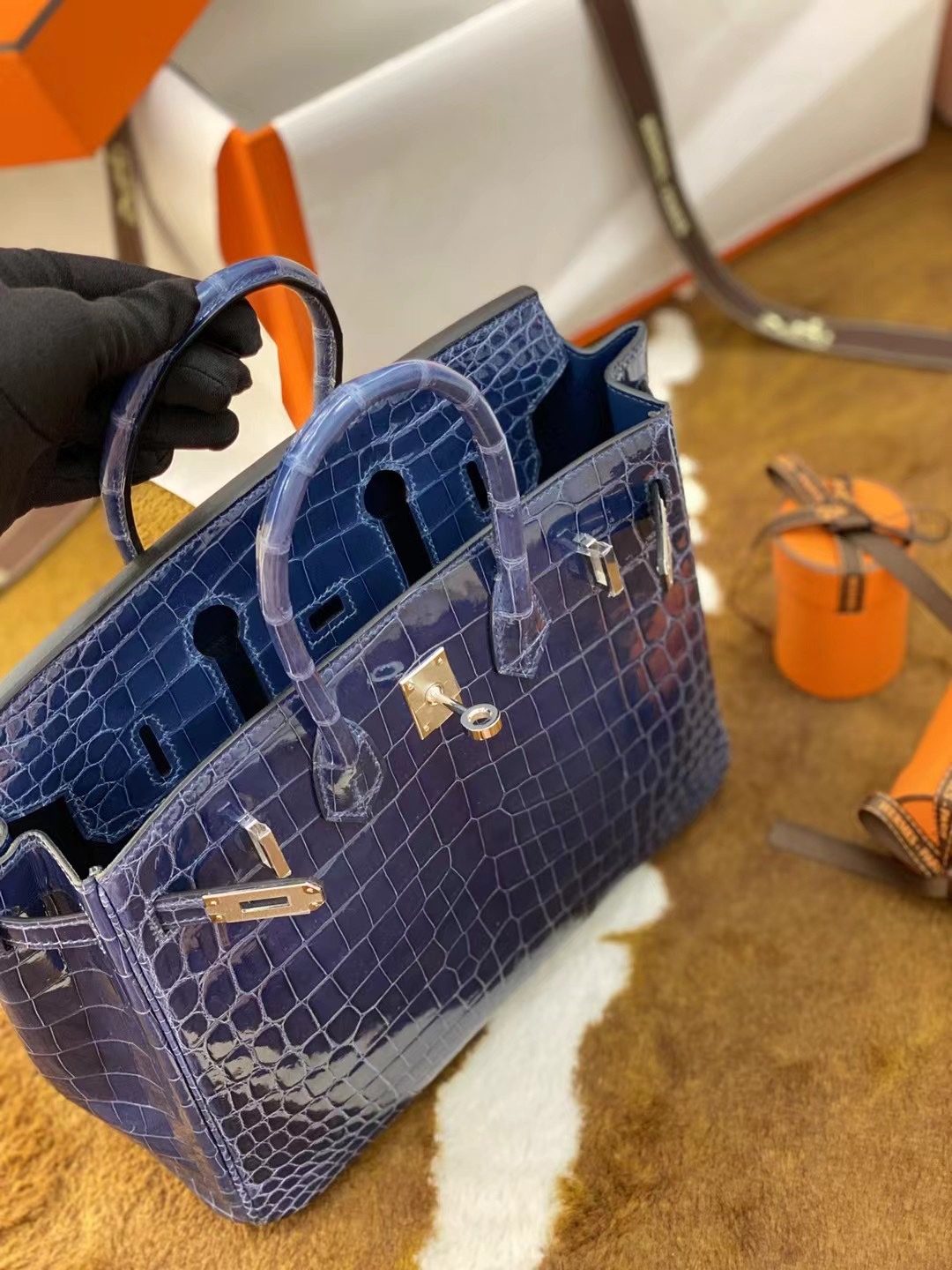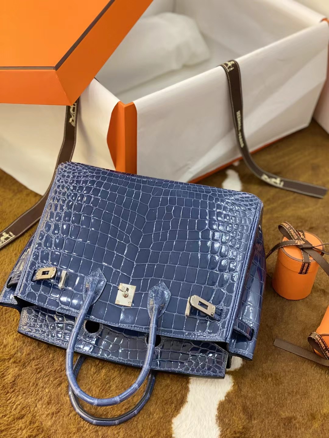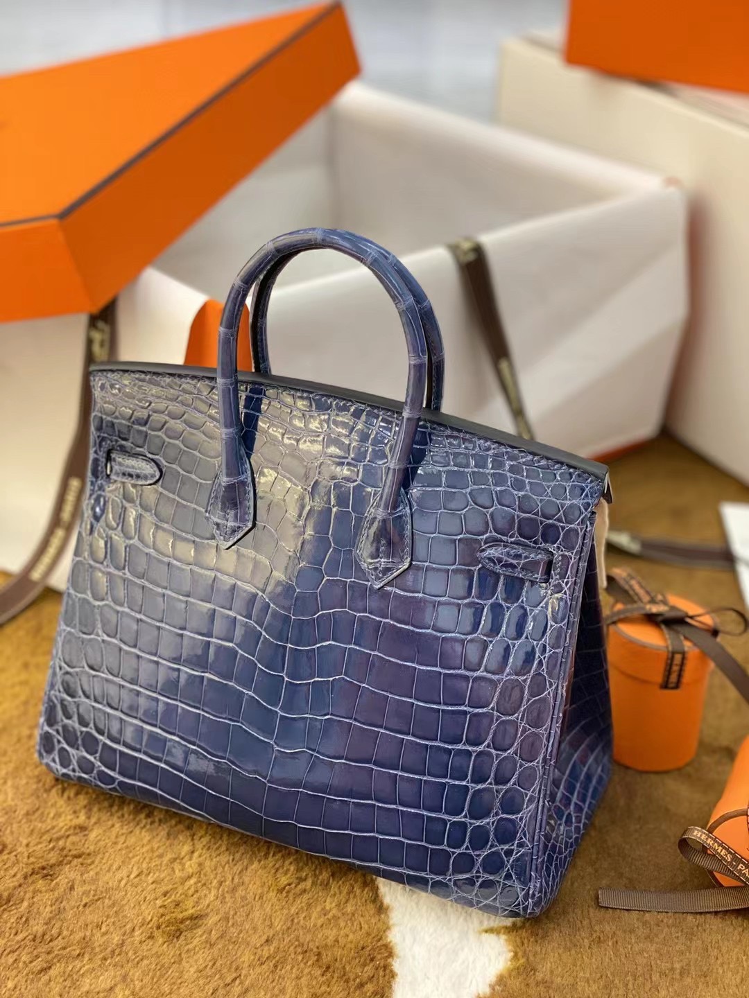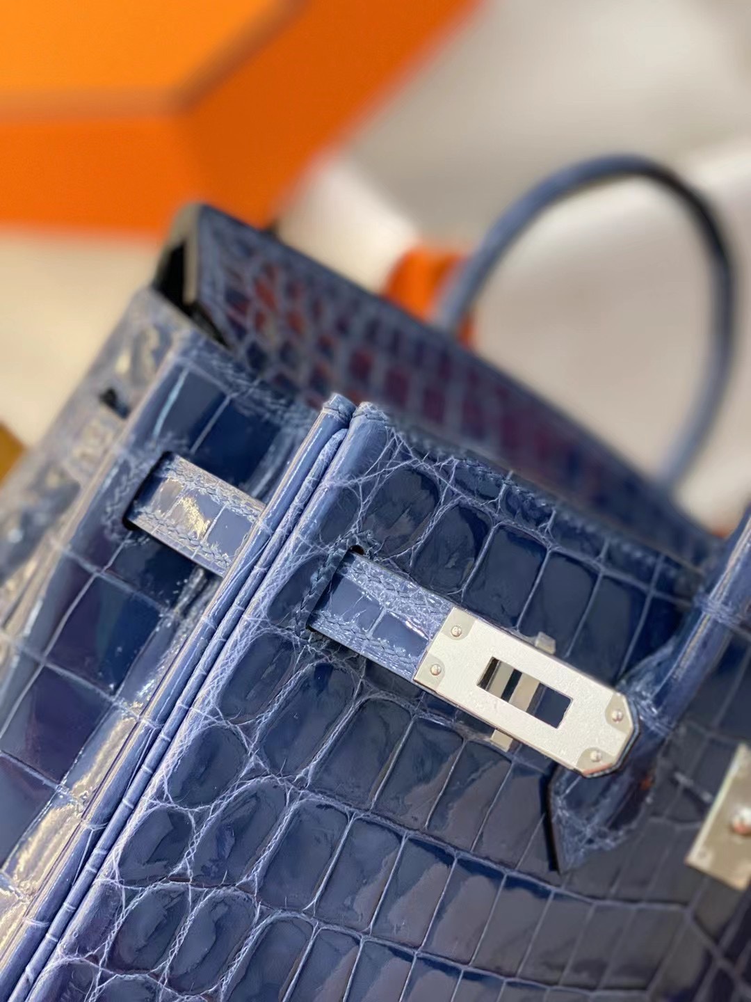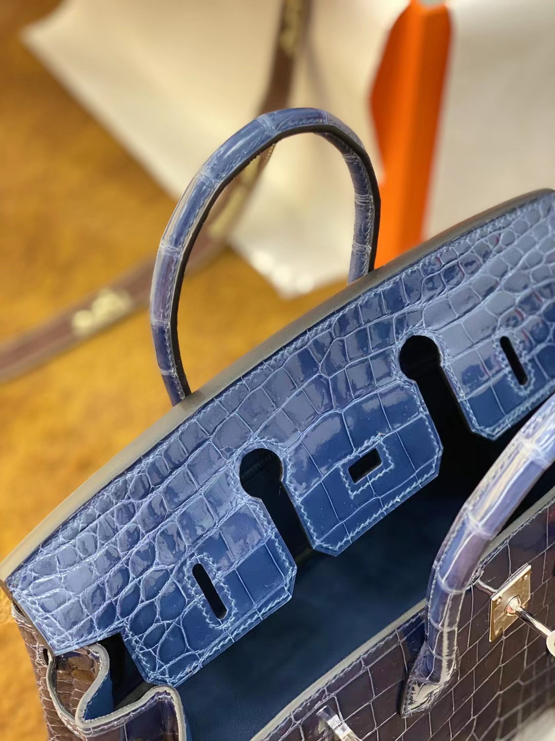 Hermes Birkin 25 Bleu Baltique Niloticus Shiny Gold Hardware