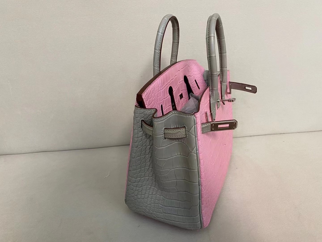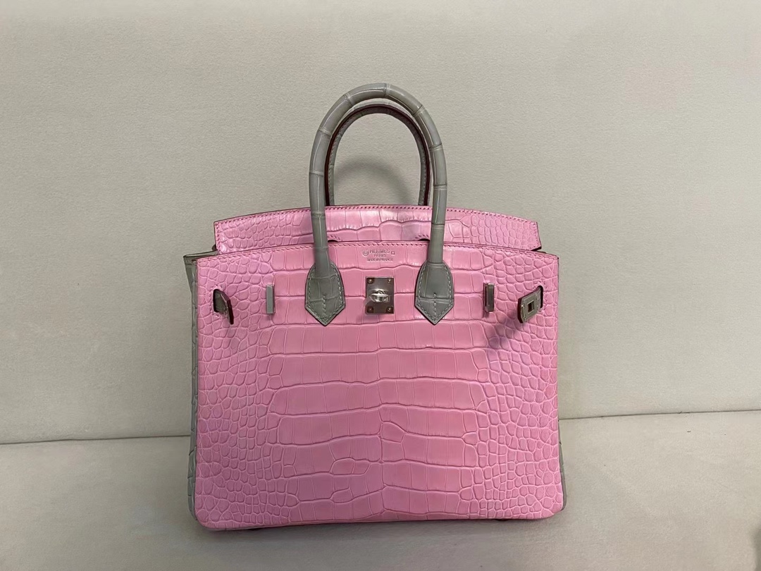 Hermes Birkin 25 Matte Pink 5P & Gris Perle Alligator