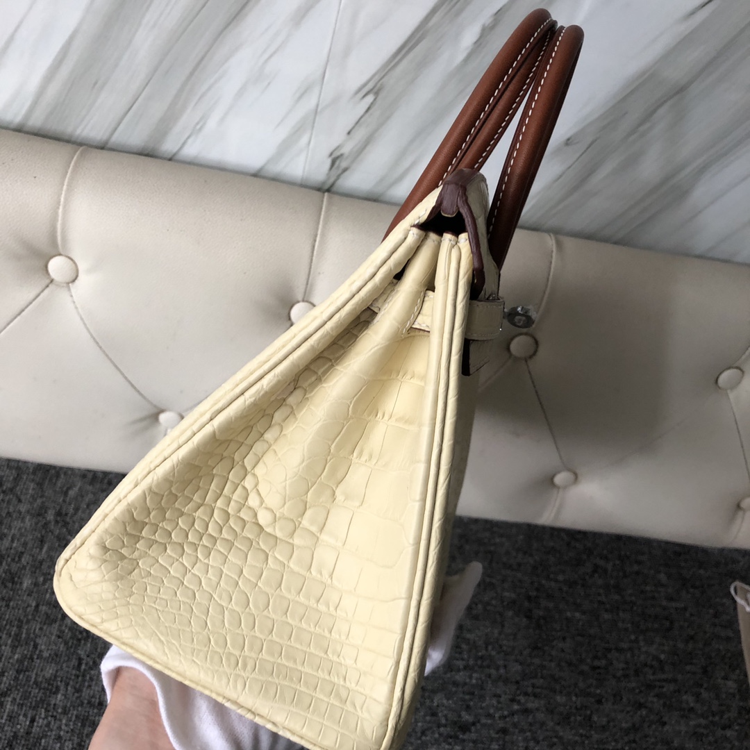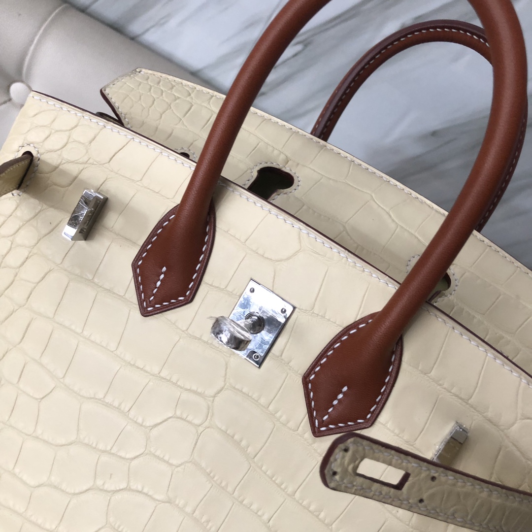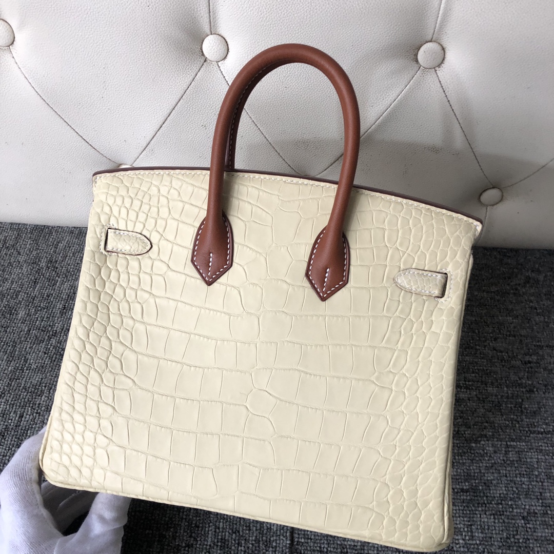 Hermes Birkin 25 Touch Matte Alligator Crocodile Y1 Vanille Barenia Natural