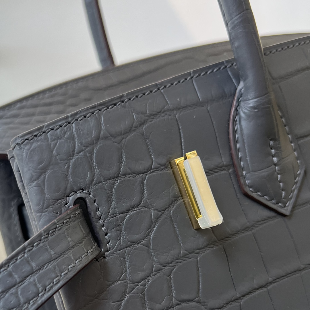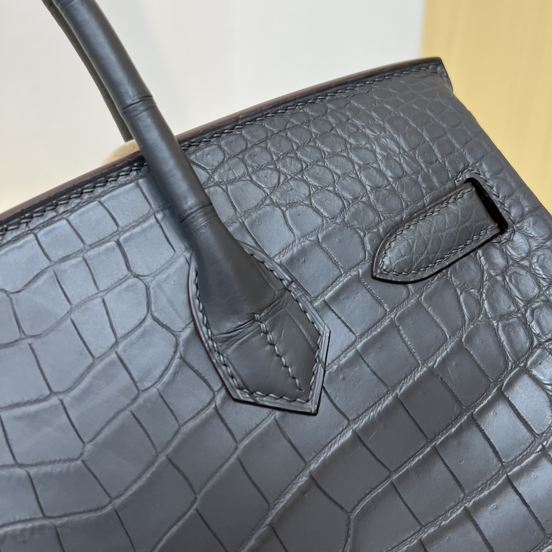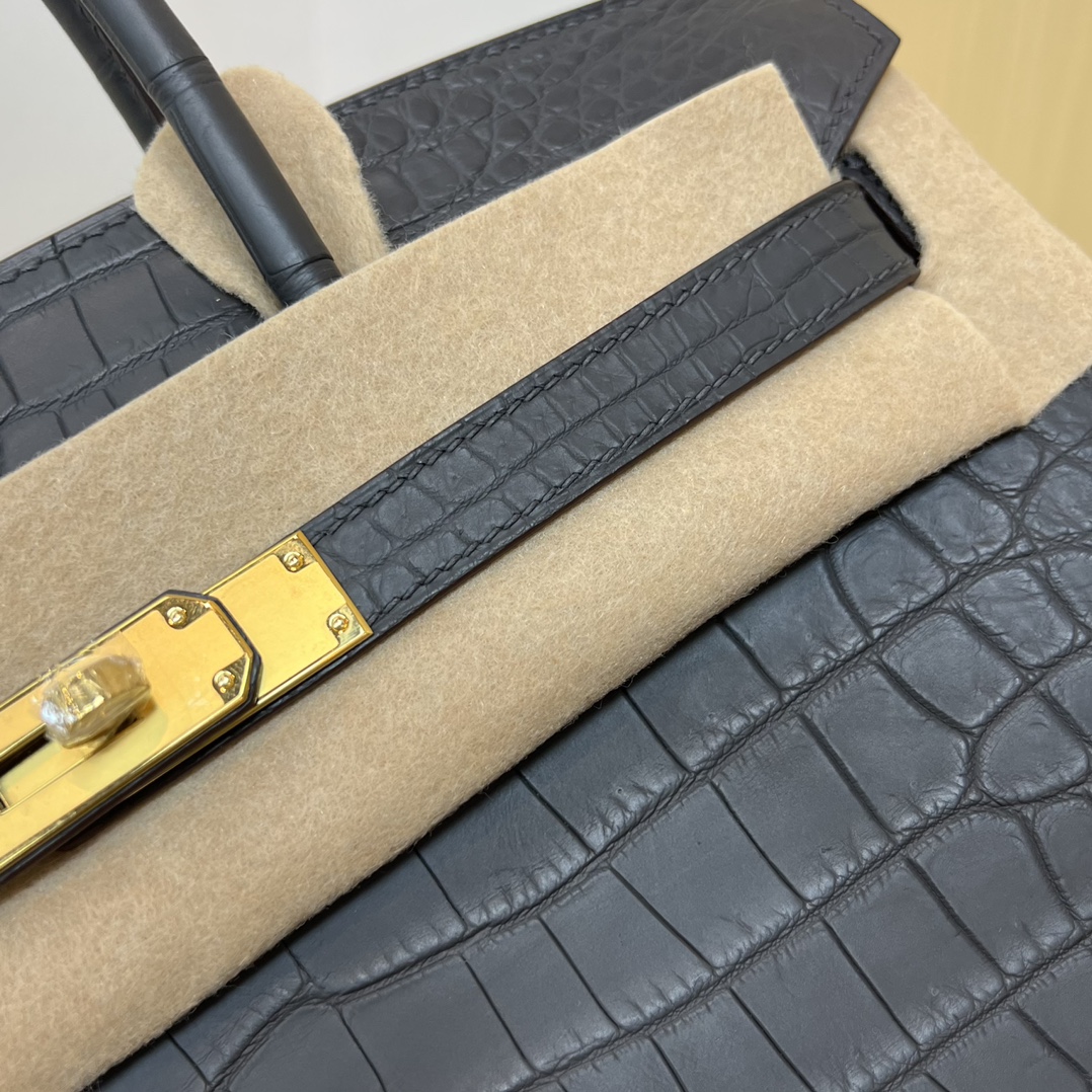 Hermes Birkin 35 Matte Alligator Graphite Gold Buckle Gold Lock