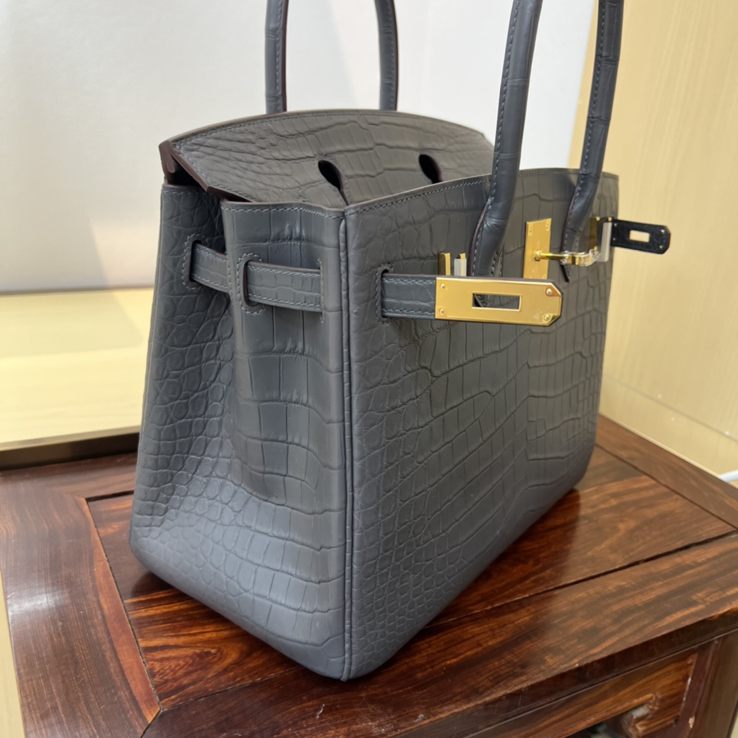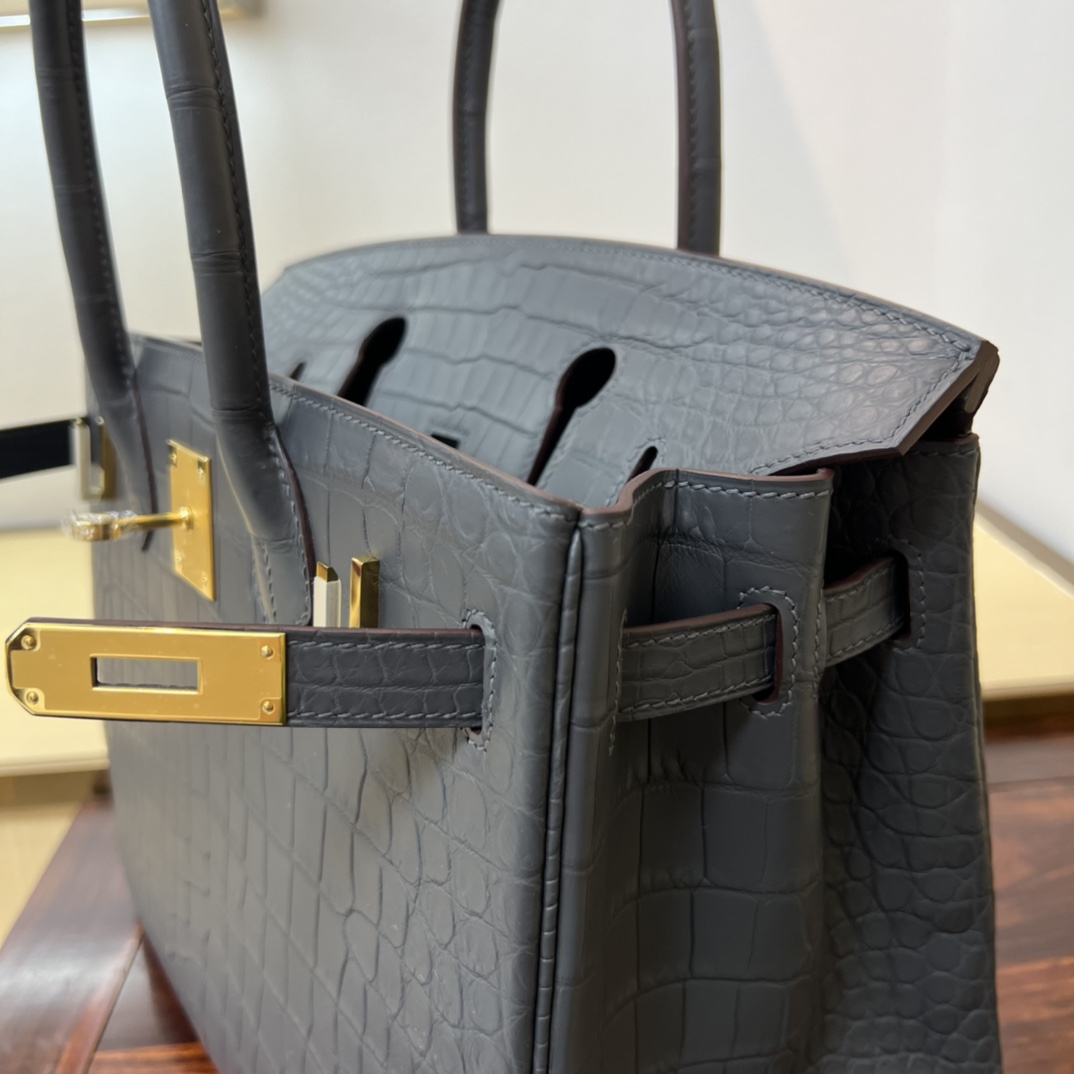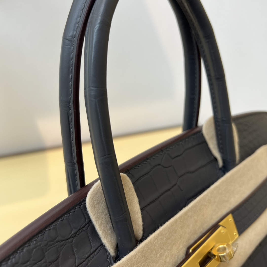 Hermes Birkin 35 Matte Alligator Graphite Gold Buckle Gold Lock