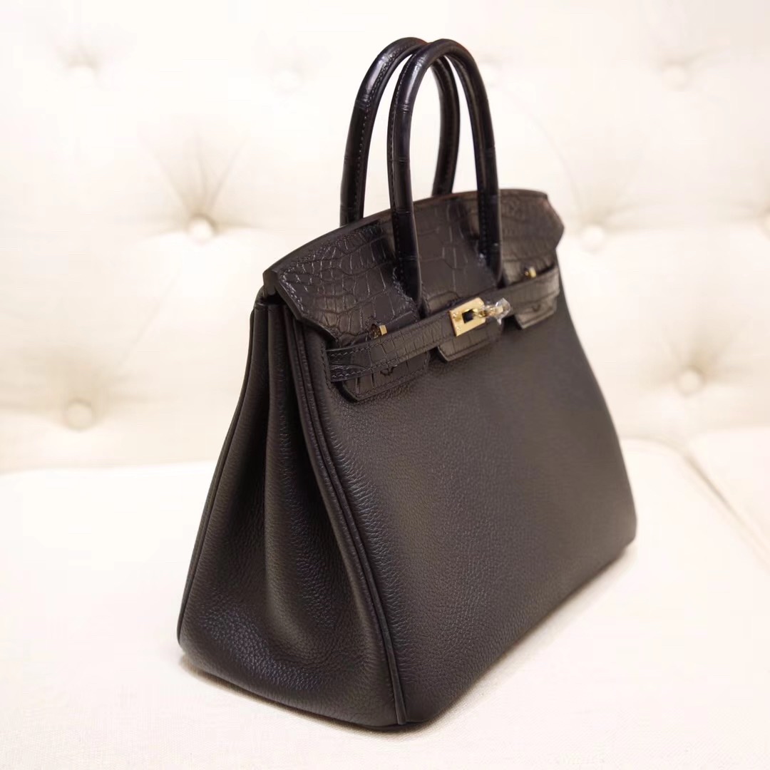 Hermes Birkin Touch 30 Niloticus Togo Black Gold Buckle Gold Lock
