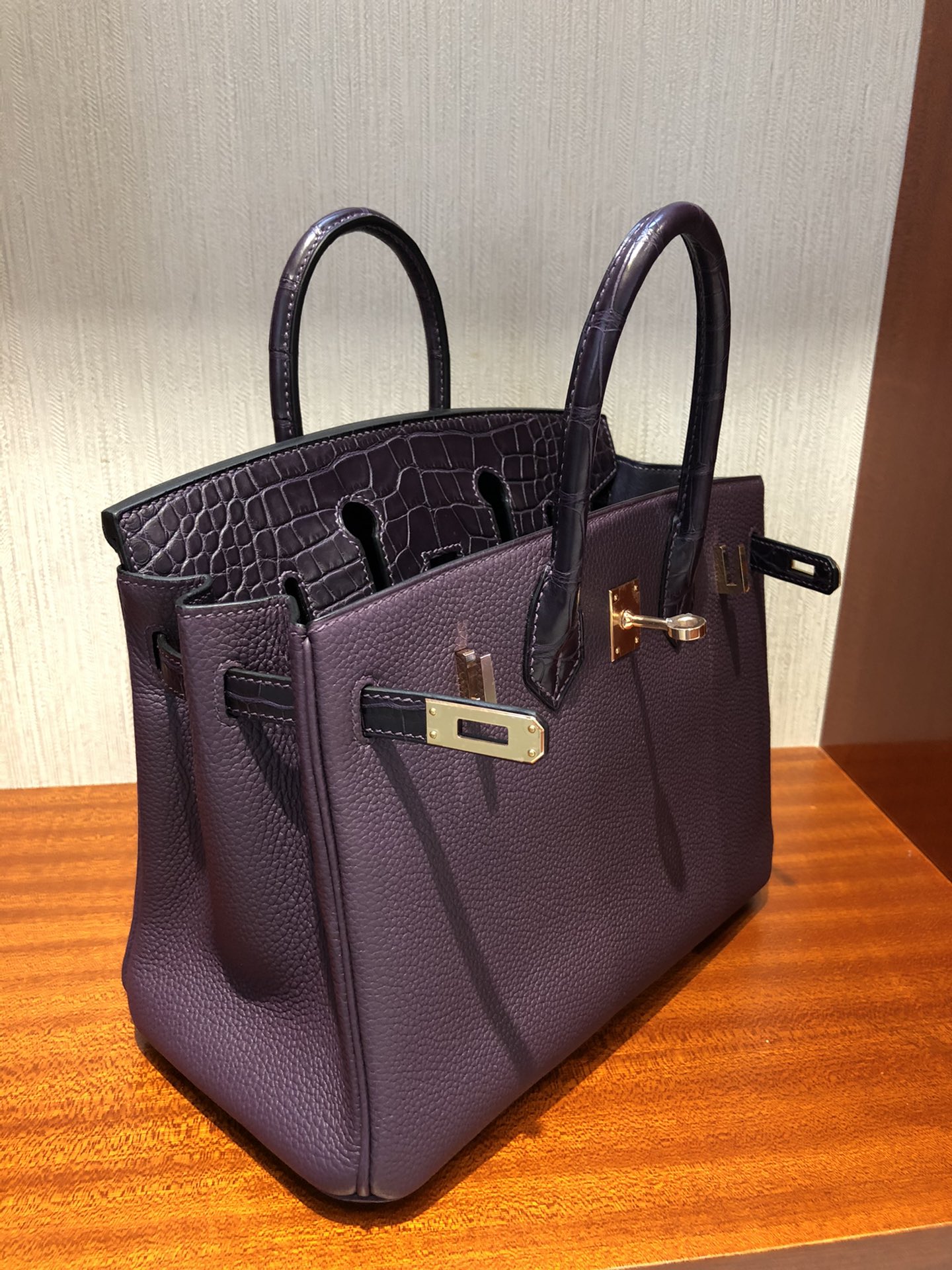 Hermes Birkin Touch Togo & Matte crocodile grape purple Rose Gold Hardware Handmade