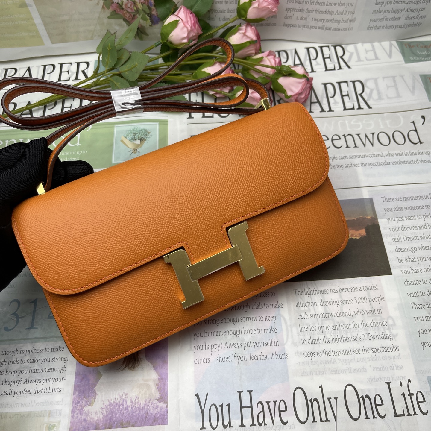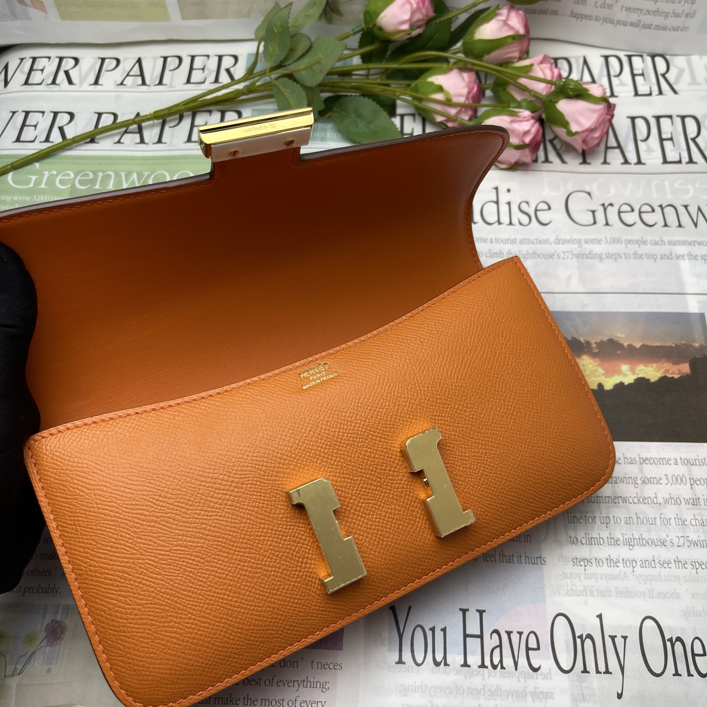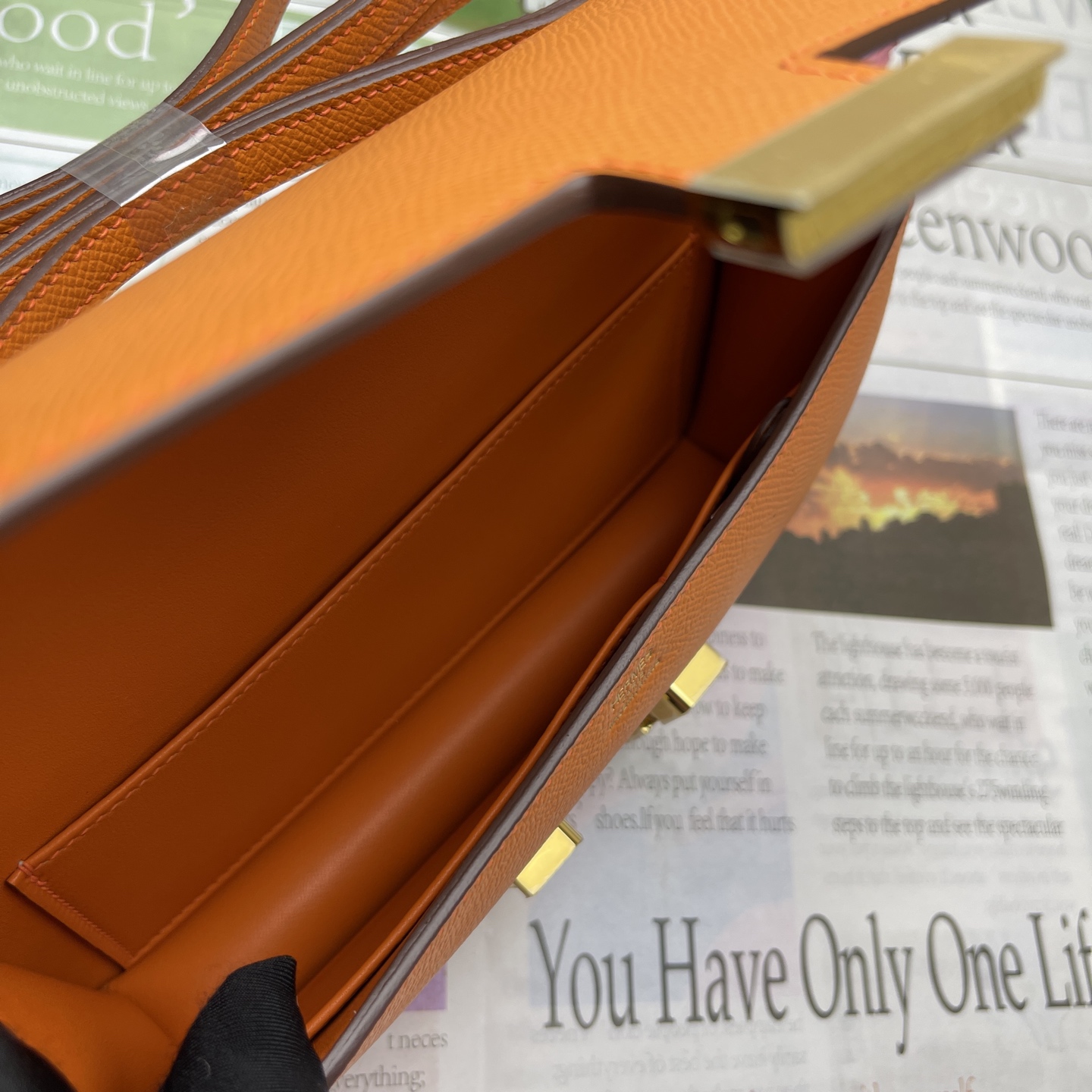 Hermes Constance Rectangular Flap Bag in Orange logo Gold