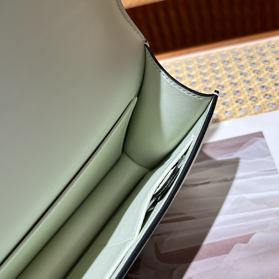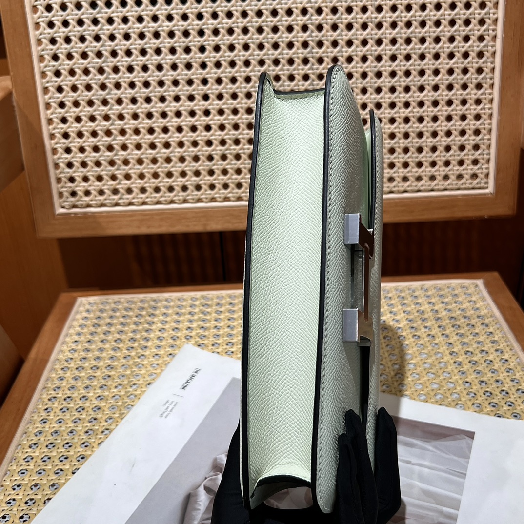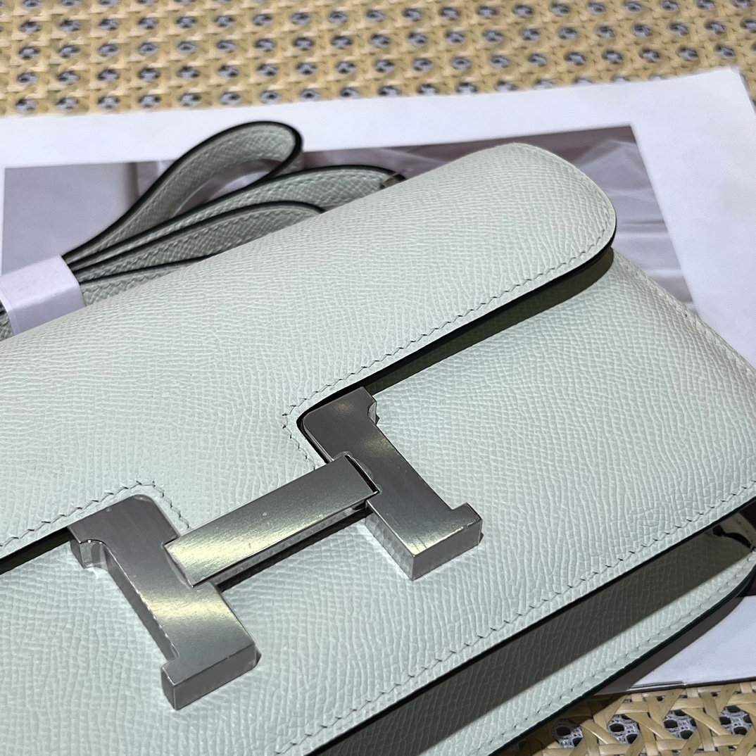 Hermes Constance white epsom leather clutch with gold tag