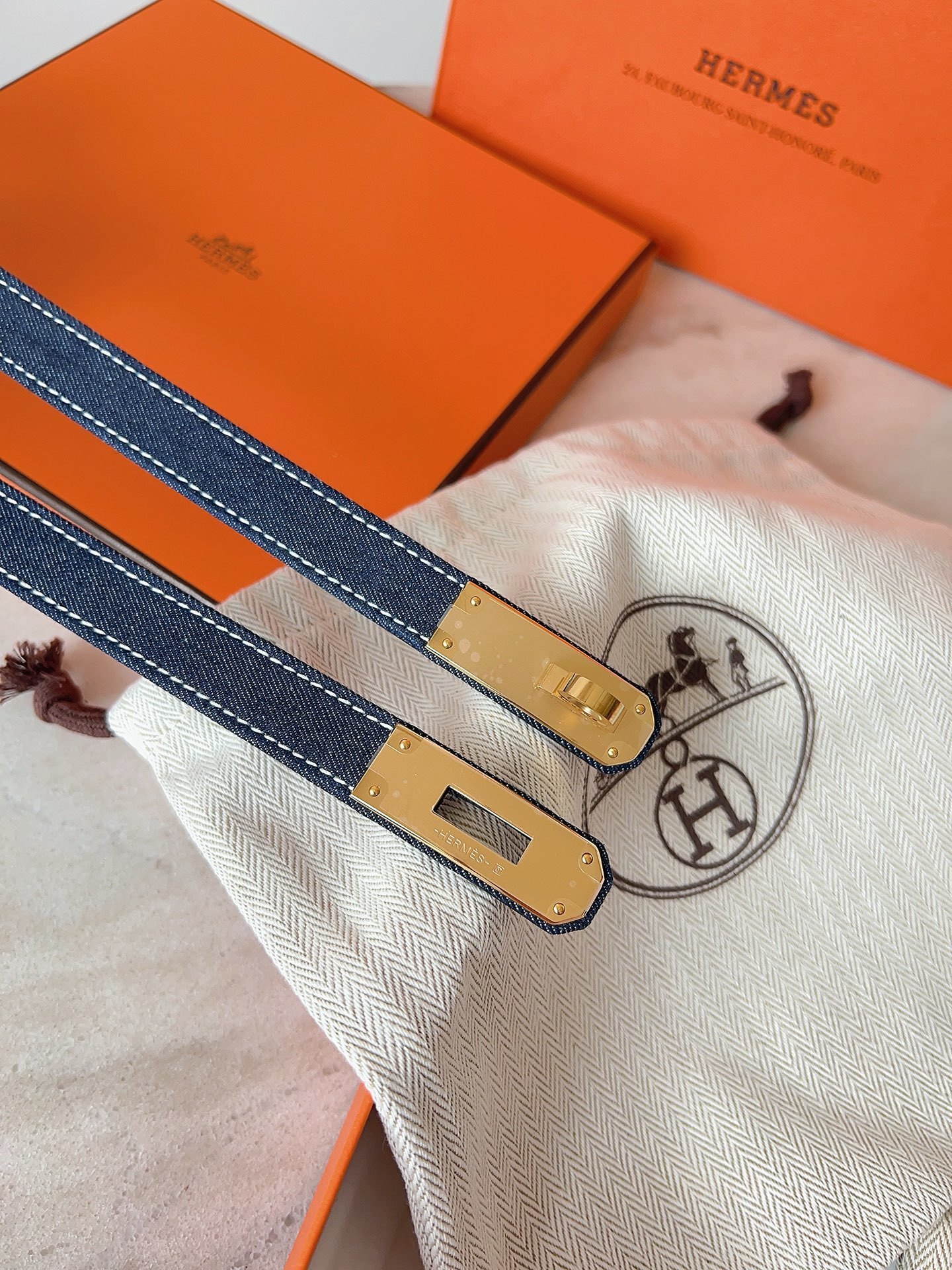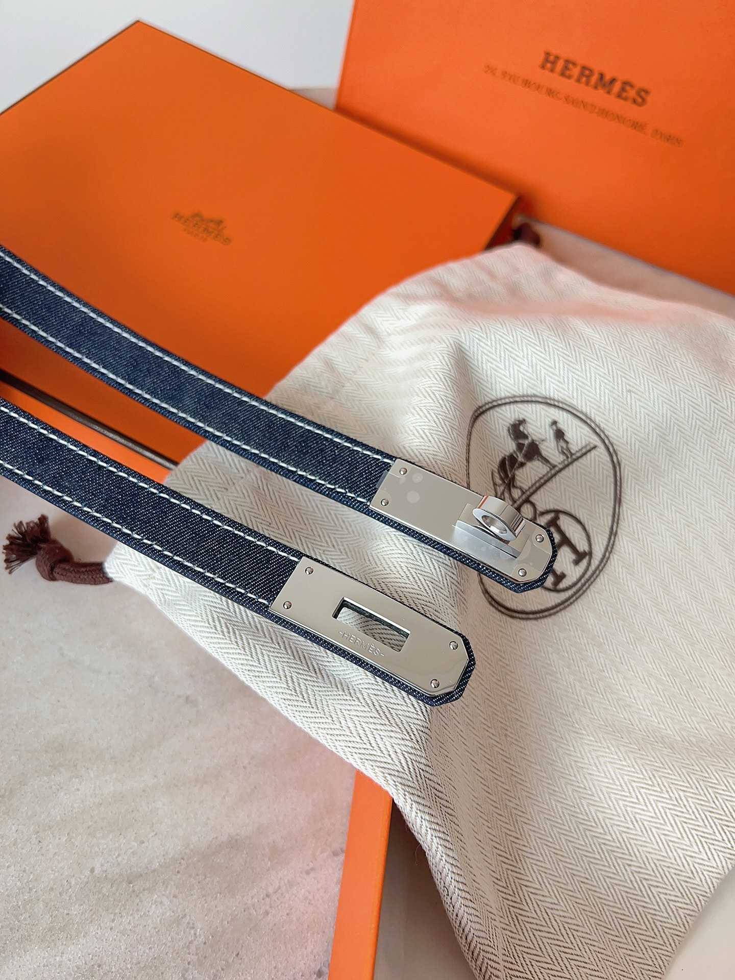 Elevate your accessory collection with the iconic Hermes Kelly Double Tour Bracelet. This exquisite piece combines the timeless elegance of the legendary Kelly bag with a modern, casual twist. Crafted from premium blue denim fabric featuring signature white contrast stitching, this bracelet offers a fresh and sophisticated aesthetic.