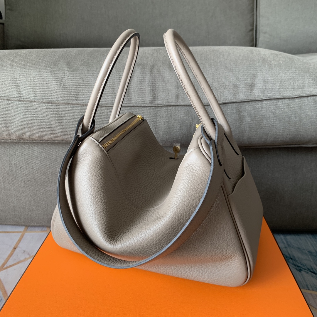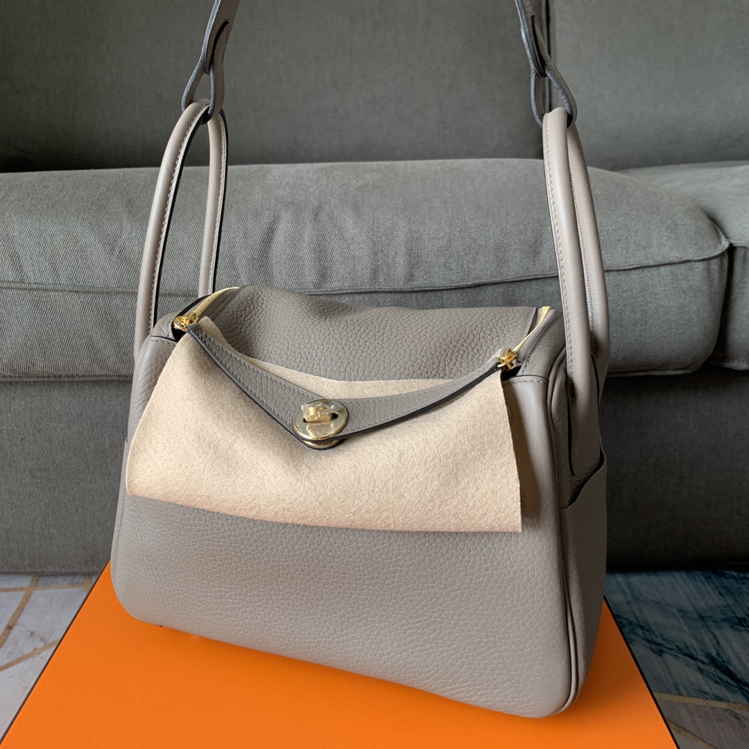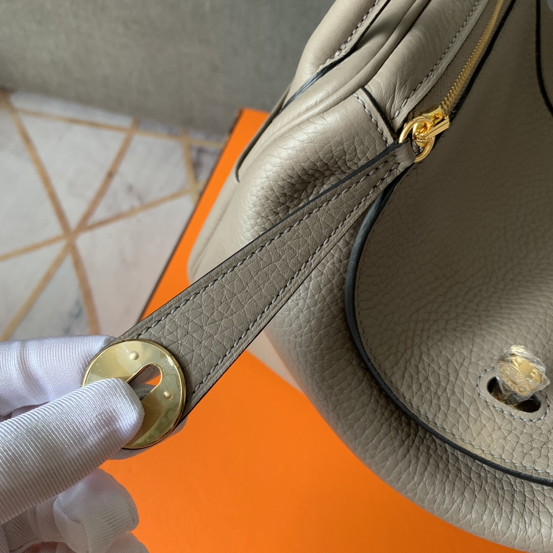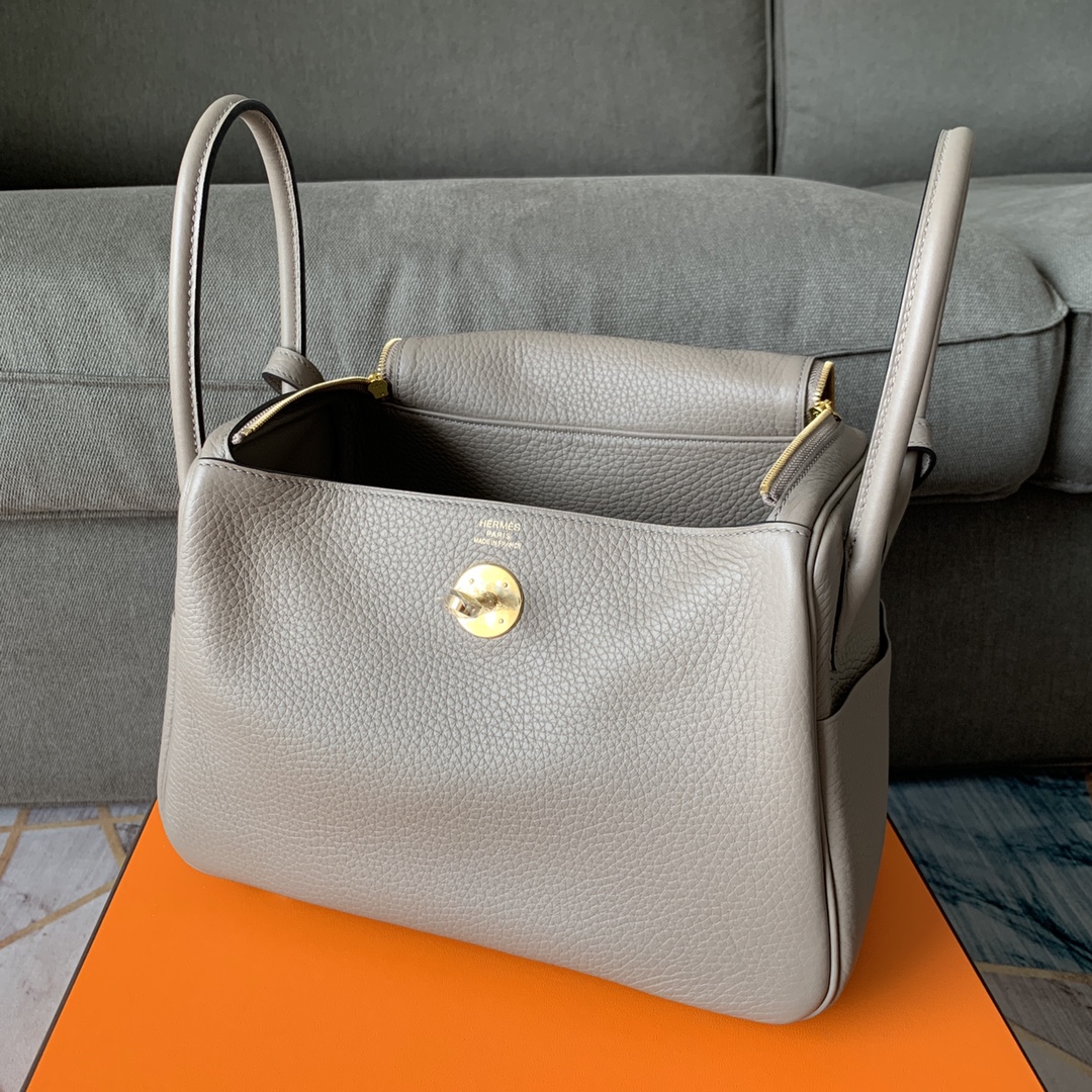 Hermes Lindy TC Leather Etoupe Grey Gold Hardware