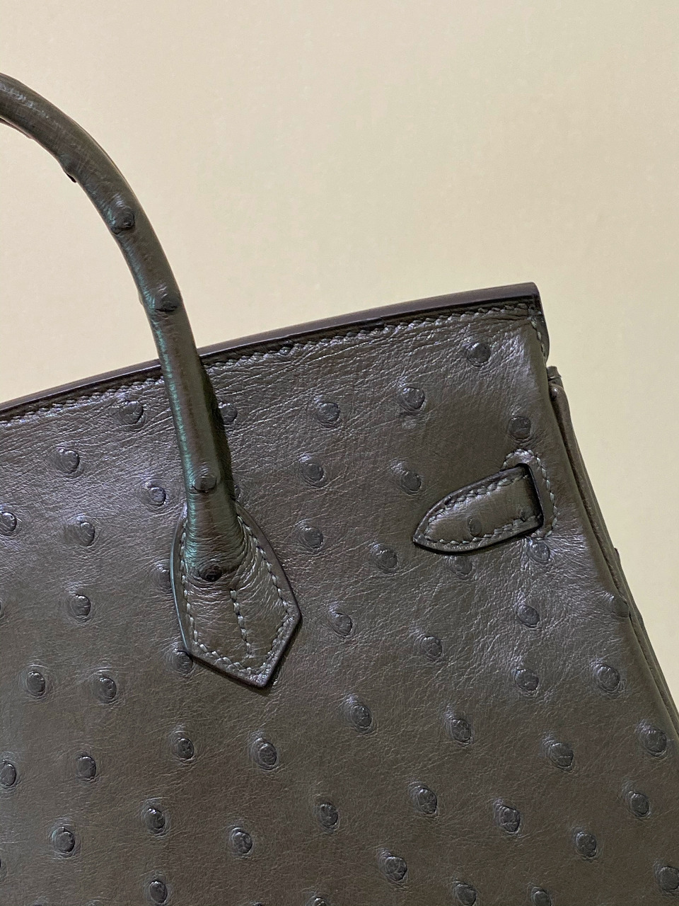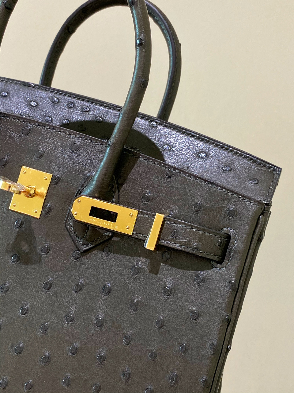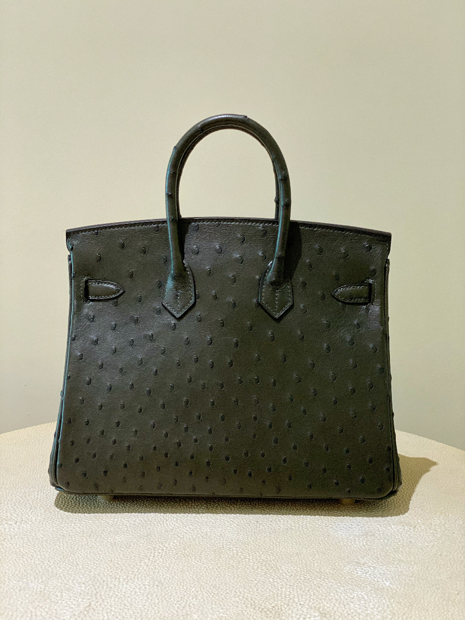 HERMES Ostrich Birkin 25 Gris Meyer