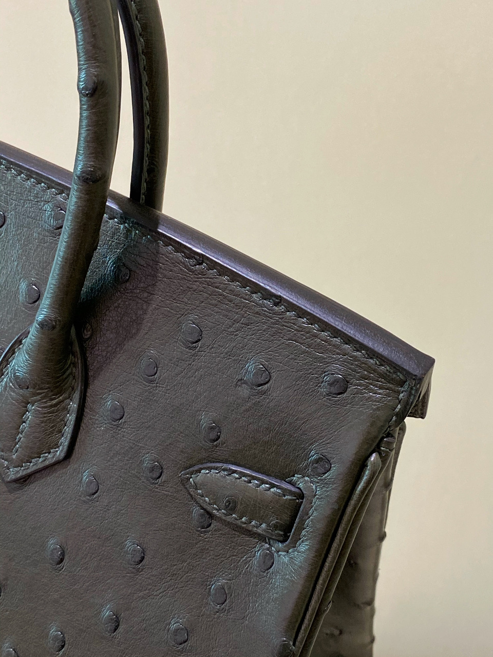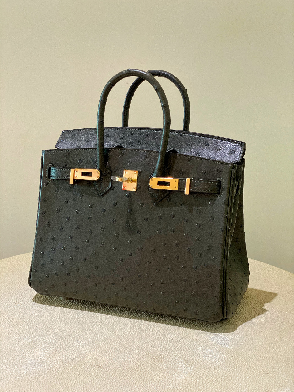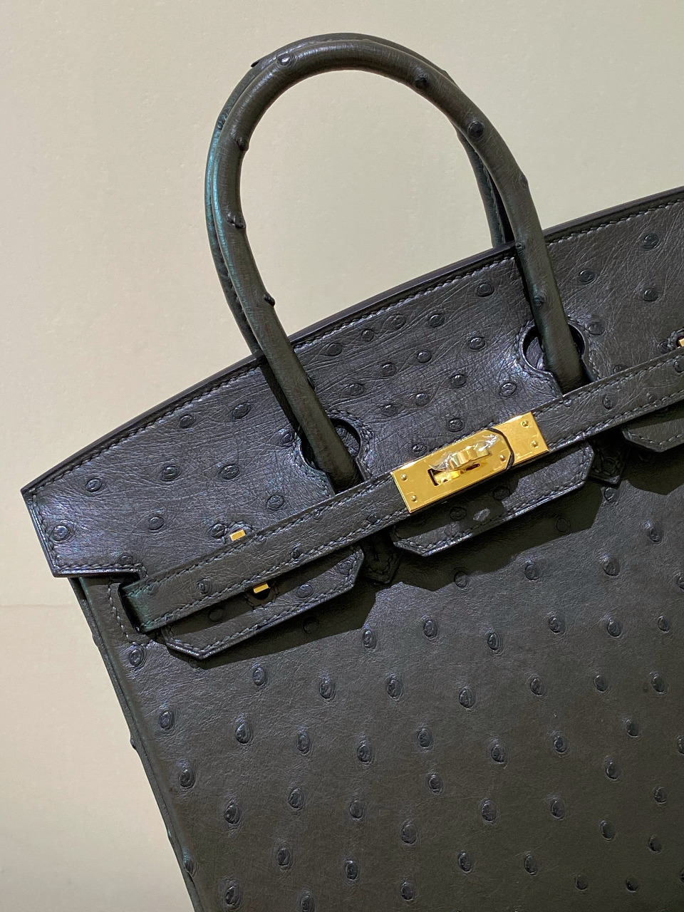 HERMES Ostrich Birkin 25 Gris Meyer
