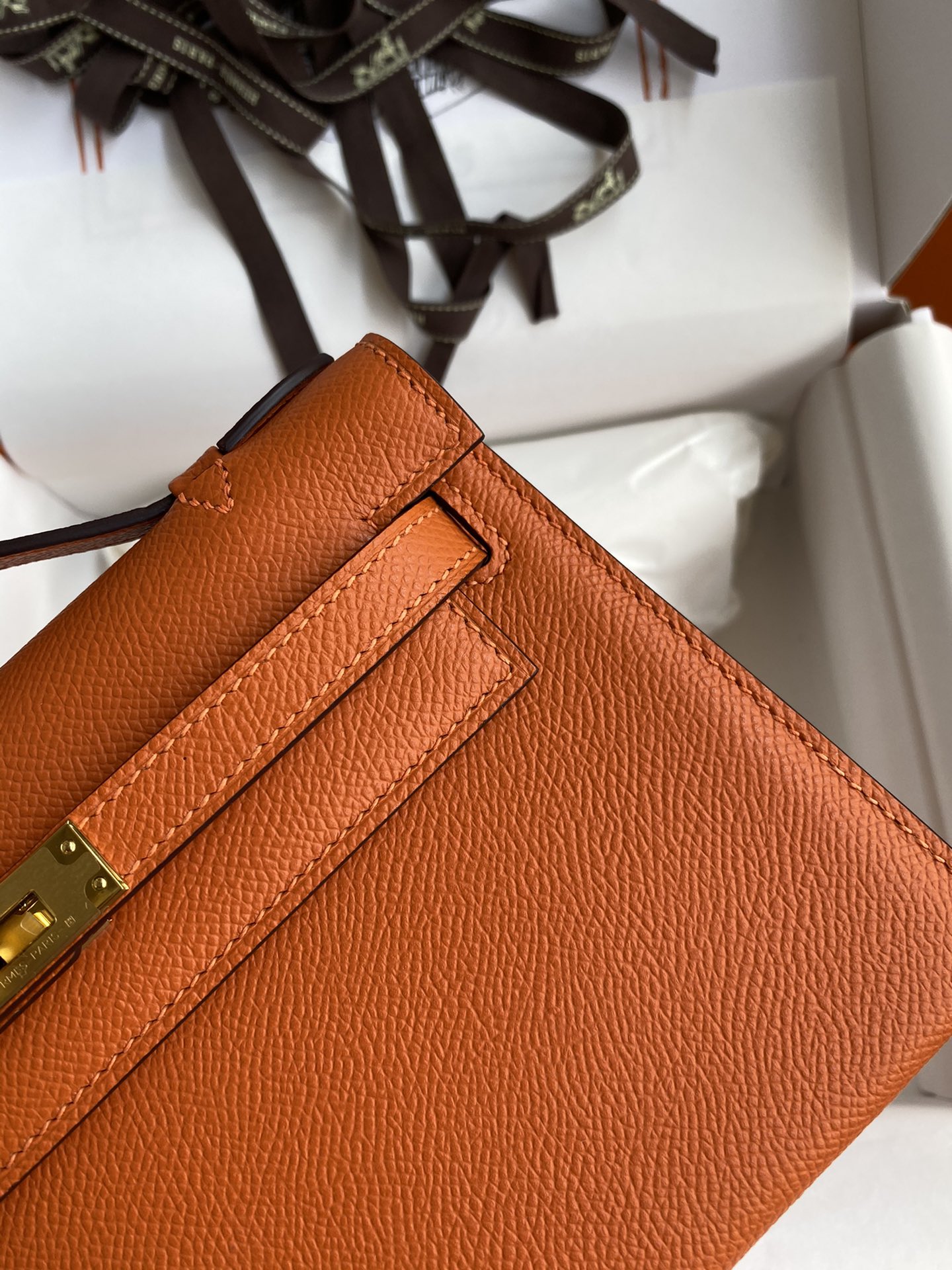 HERMES Swift Kelly Pochette Clutch Menthe Orange