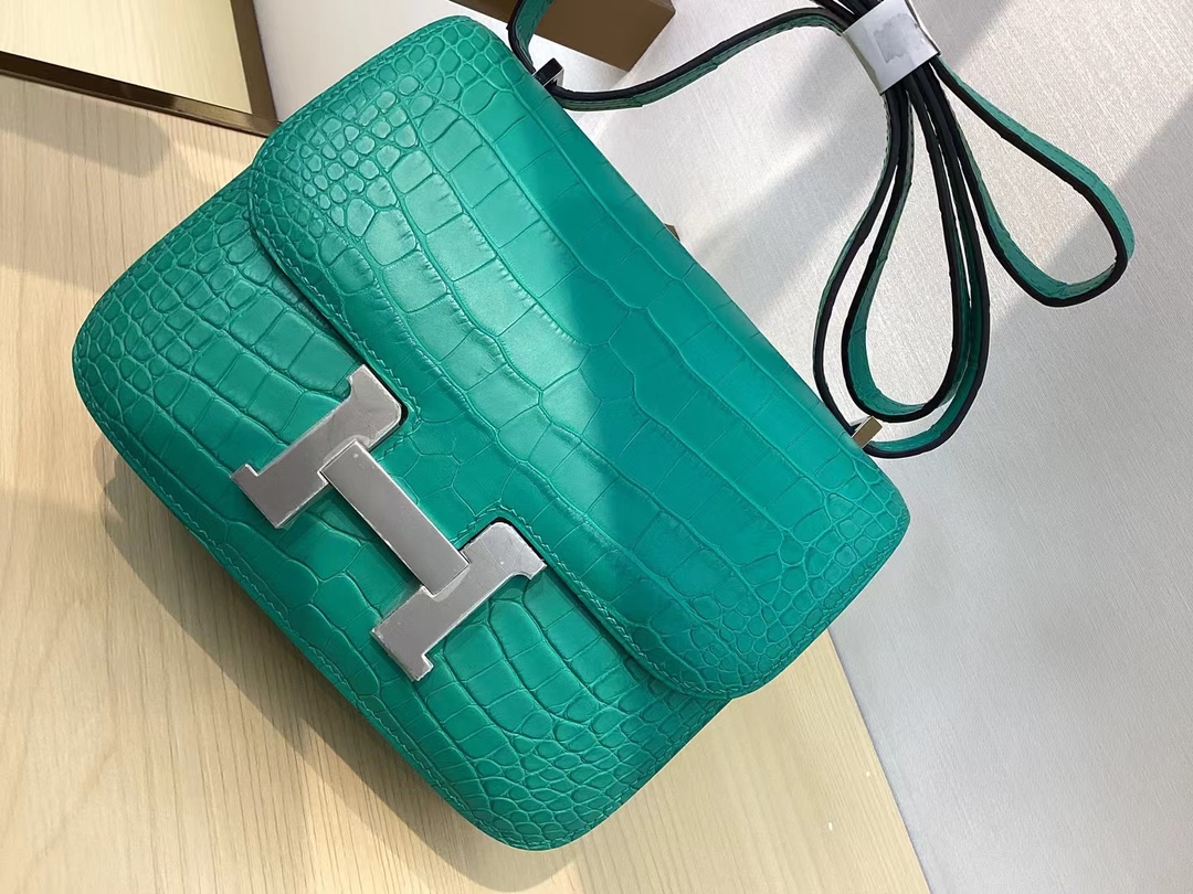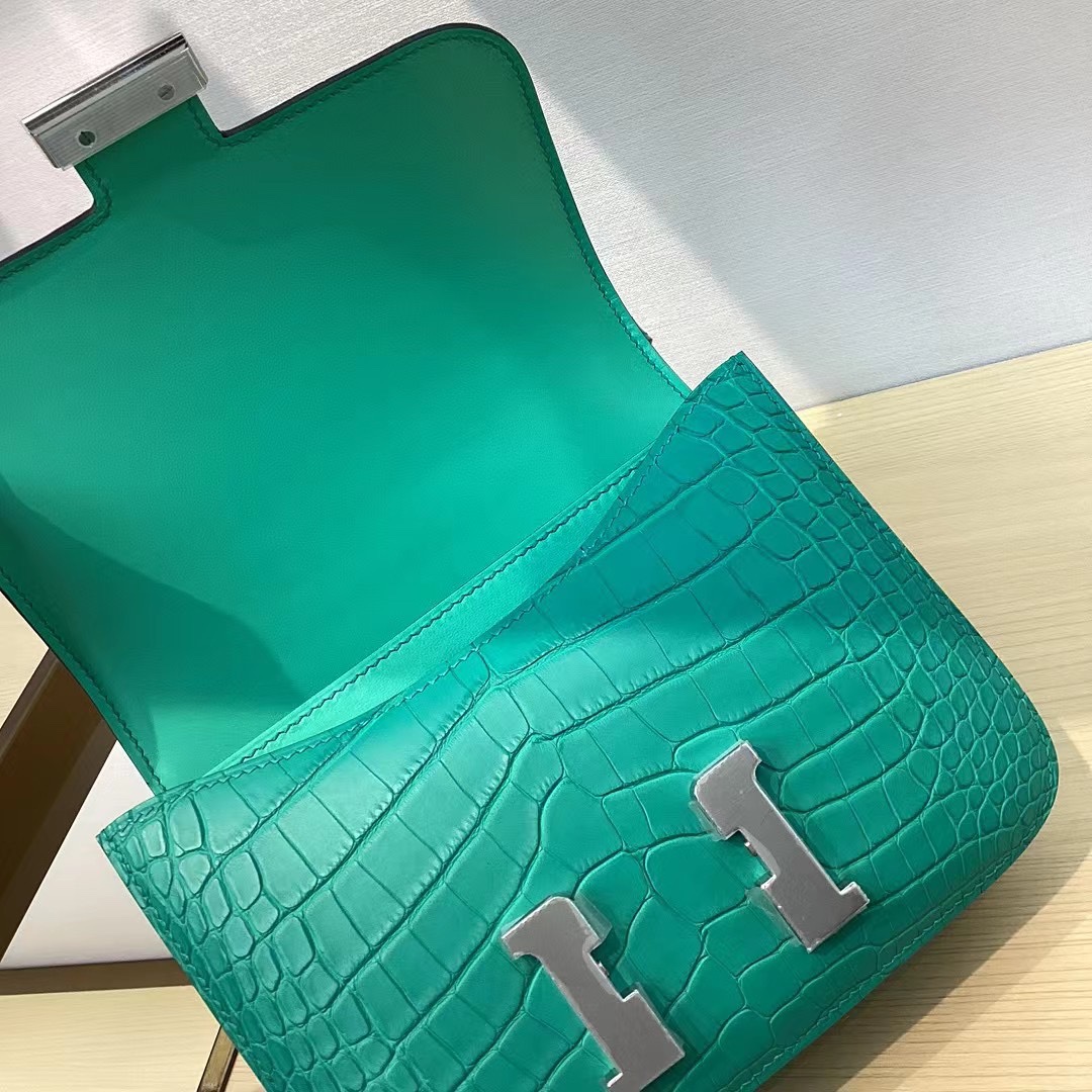 Hermes Vert Jade Matte Alligator Constance 18 Palladium Hardware