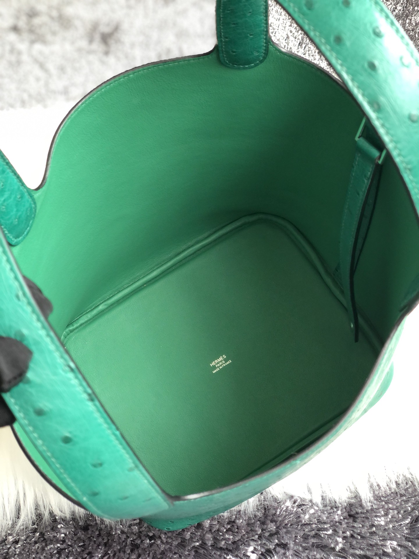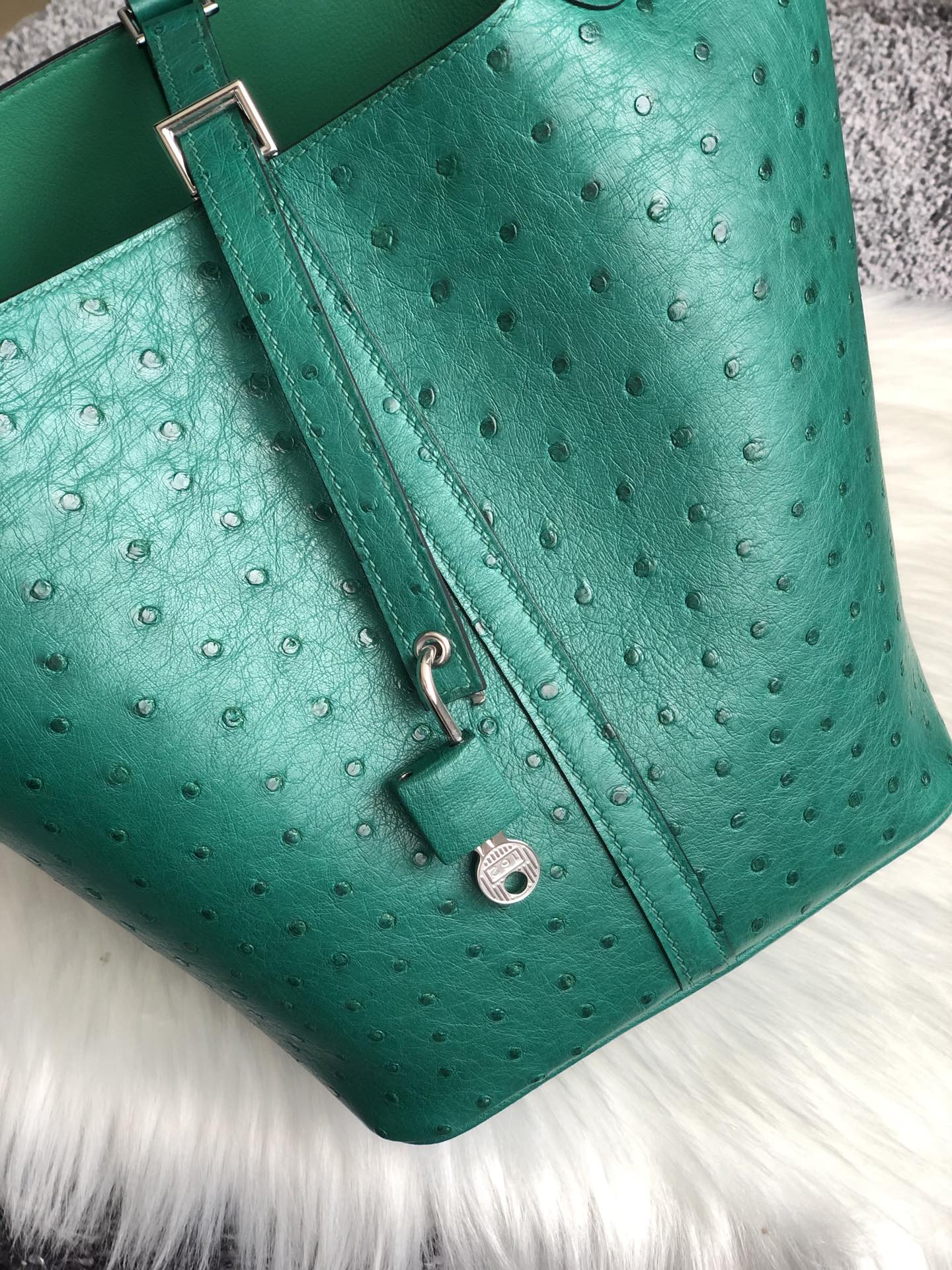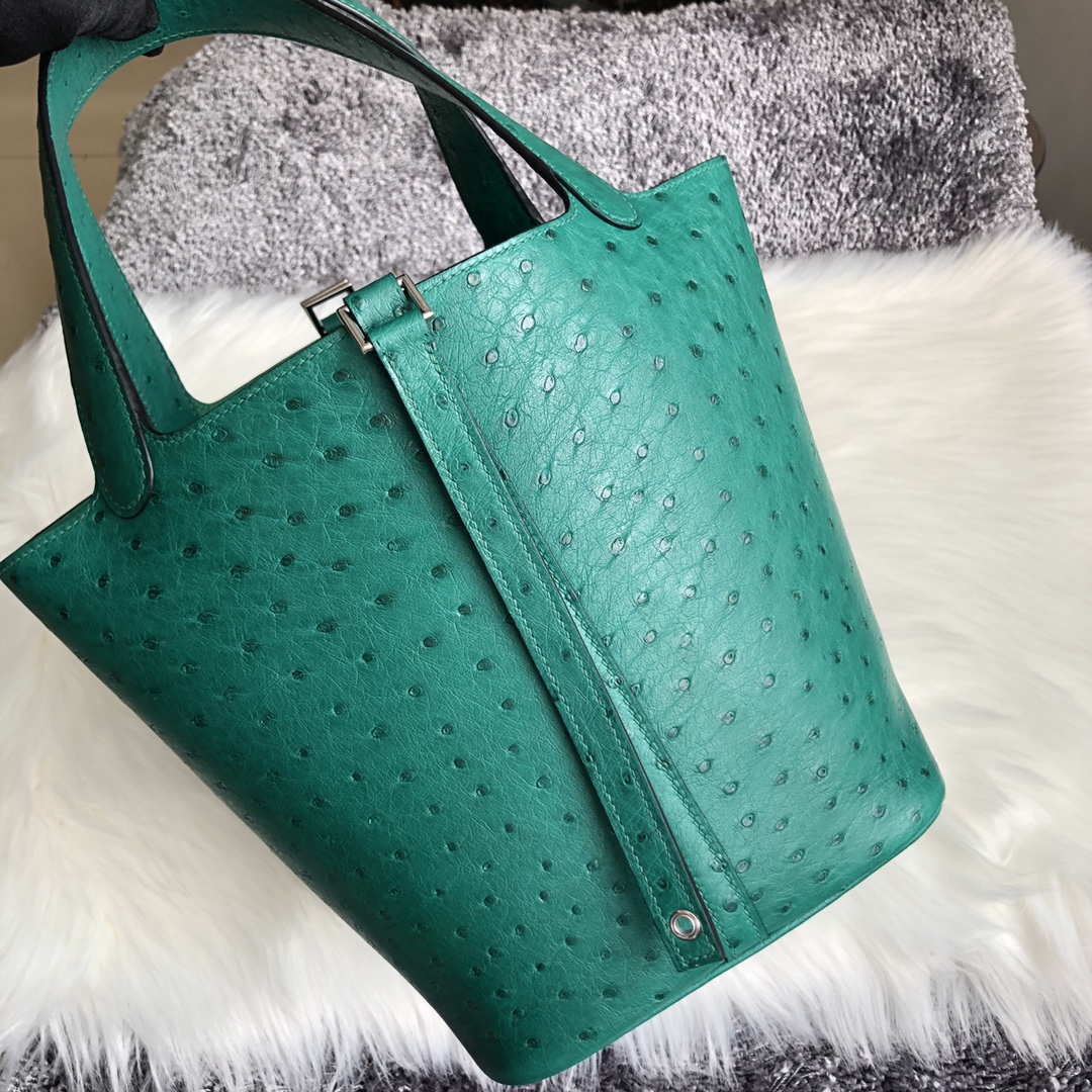 Hermes Vert Vertigo Ostrich Picotin Lock 18 Bag