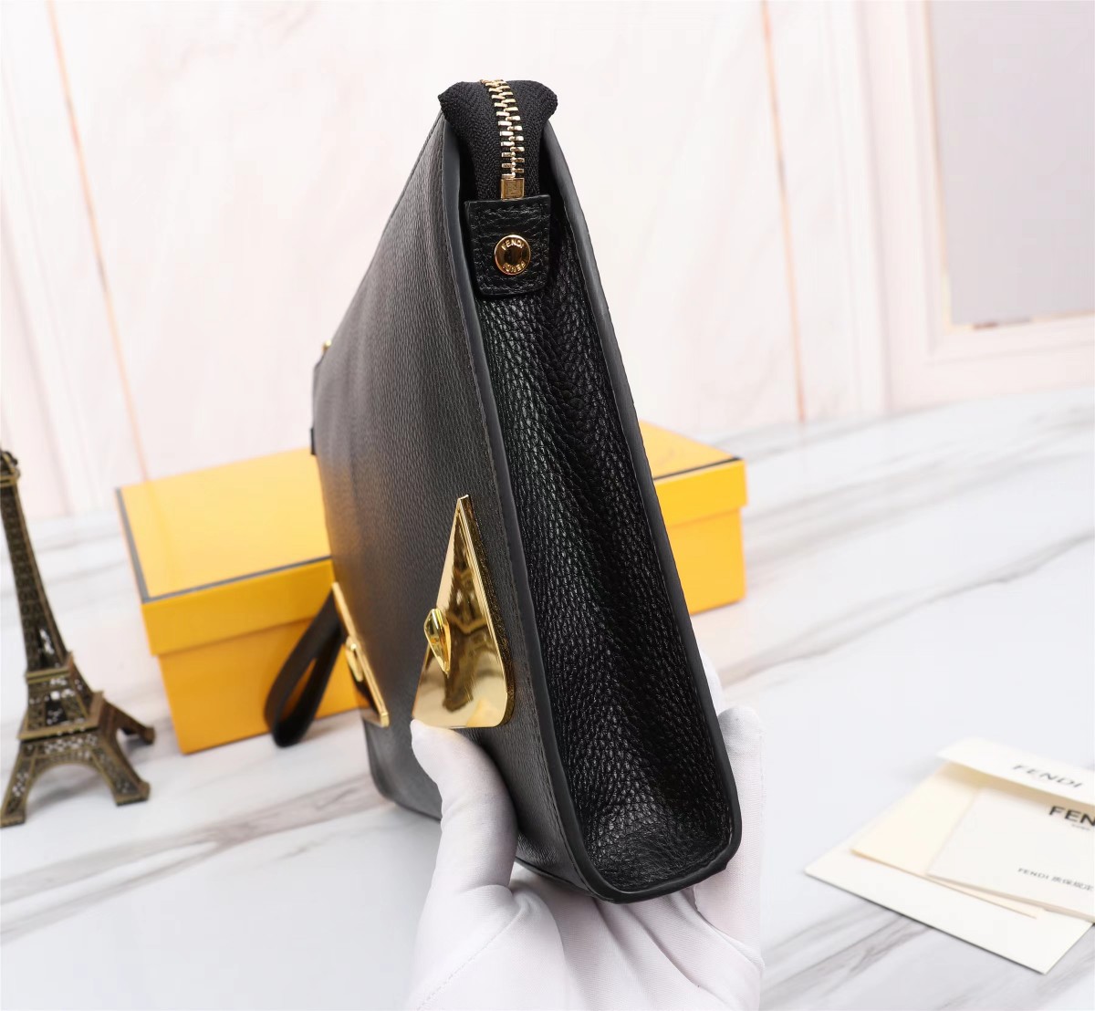 King Queen Purchasing] FENDI Fendi Little Monster Men's Bag New Casual Clutch Bag Fashion Leather