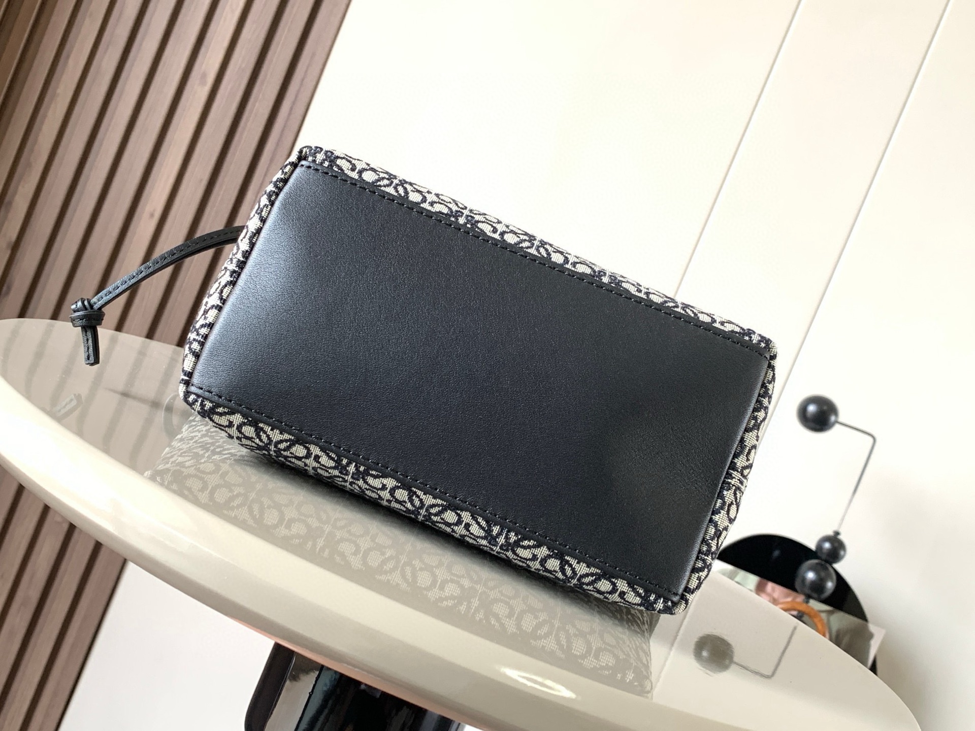 LOEWE Jacquard Anagram Calfskin Small Cubi Bag Navy Black 1622836
